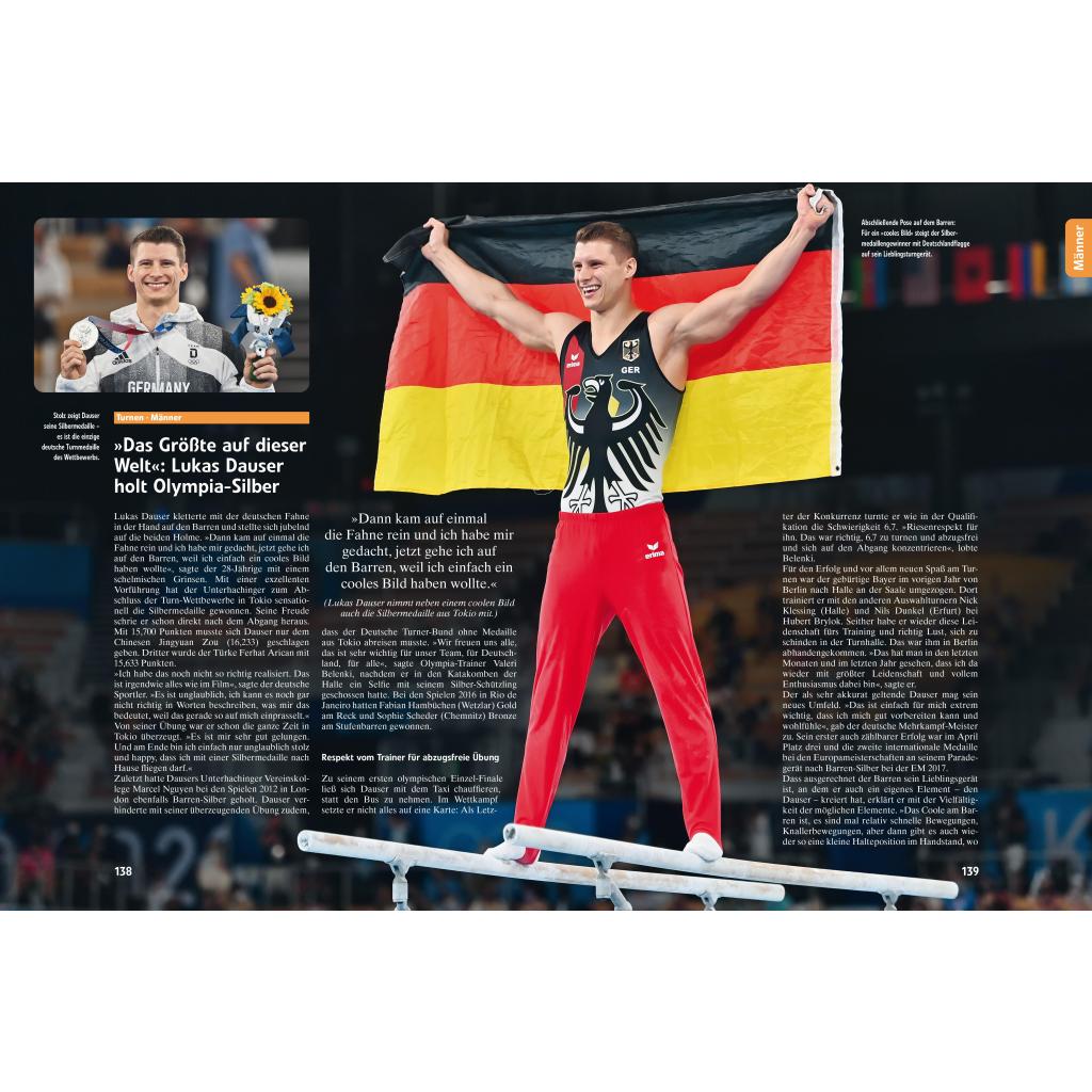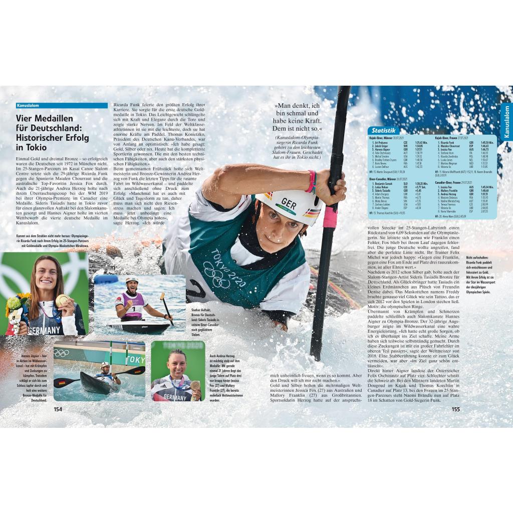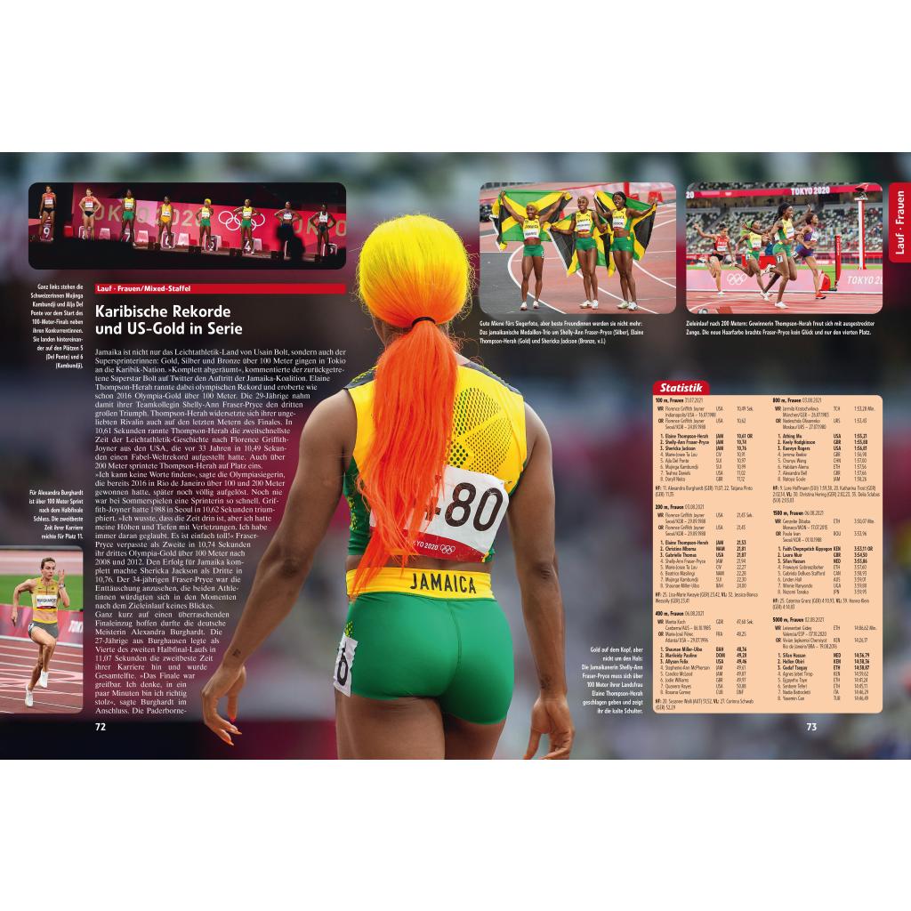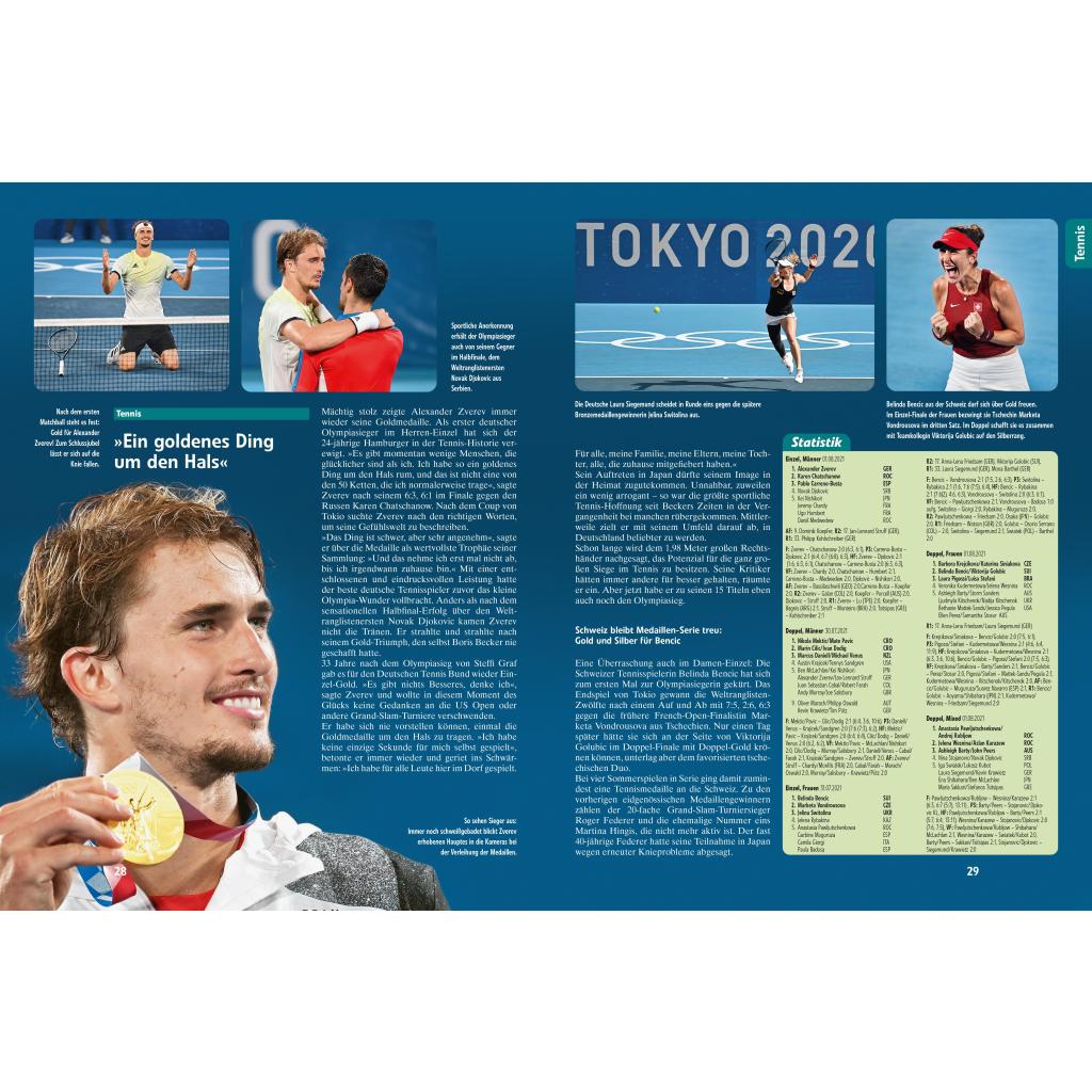 Olympische Träume in Tokio Die Olympischem Sommerspiele Tokio 2021 sind besondere Spiele: Noch nie fand eine Olympiade während einer Pandemie statt. Doch die besondere Situation tut der Faszination der Sommerspiele keinen Abbruch! 11.100 Athleten aus 206 Nationen kämpfen bei Olympia Tokio um olympisches Gold. Erleben Sie mit dieser packenden Dokumentation den Sportsgeist, die Emotionen und großen Wettkampfmomente noch einmal nach! Über 350 Fotos und umfangreiche Statistiken zu den Wettbewerben aller Olympischen Spiele Sportarten, inklusive der neuen Sportarten Baseball, Karate, Skateboard, Sportklettern, BMX Freestyle, Streetball und Surfen Sortiert nach Sportarten: Alle wichtigen Ergebnisse und Erlebnisse einer Sportart auf einen Blick Statistiken zu den Platzierungen aller Teilnehmer aus Deutschland, Österreich und der Schweiz Dokumentation der ganz besonderen olympischen Momente der Olympiade Tokio Lassen Sie sich faszinieren von den Sommerspielen! Einmal bei den Olympischen Sommerspielen dabei zu sein, ist der Lebenstraum vieler Sportler:innen. Und genau das macht die Olympischen Spiele aus: Das Miterleben der sportlichen Höchstleistungen genauso wie die überbordenden Emotionen, wenn ein Traum in Erfüllung geht. Das Blättern in diesem Bildband ist fast so gut wie live dabei zu sein!