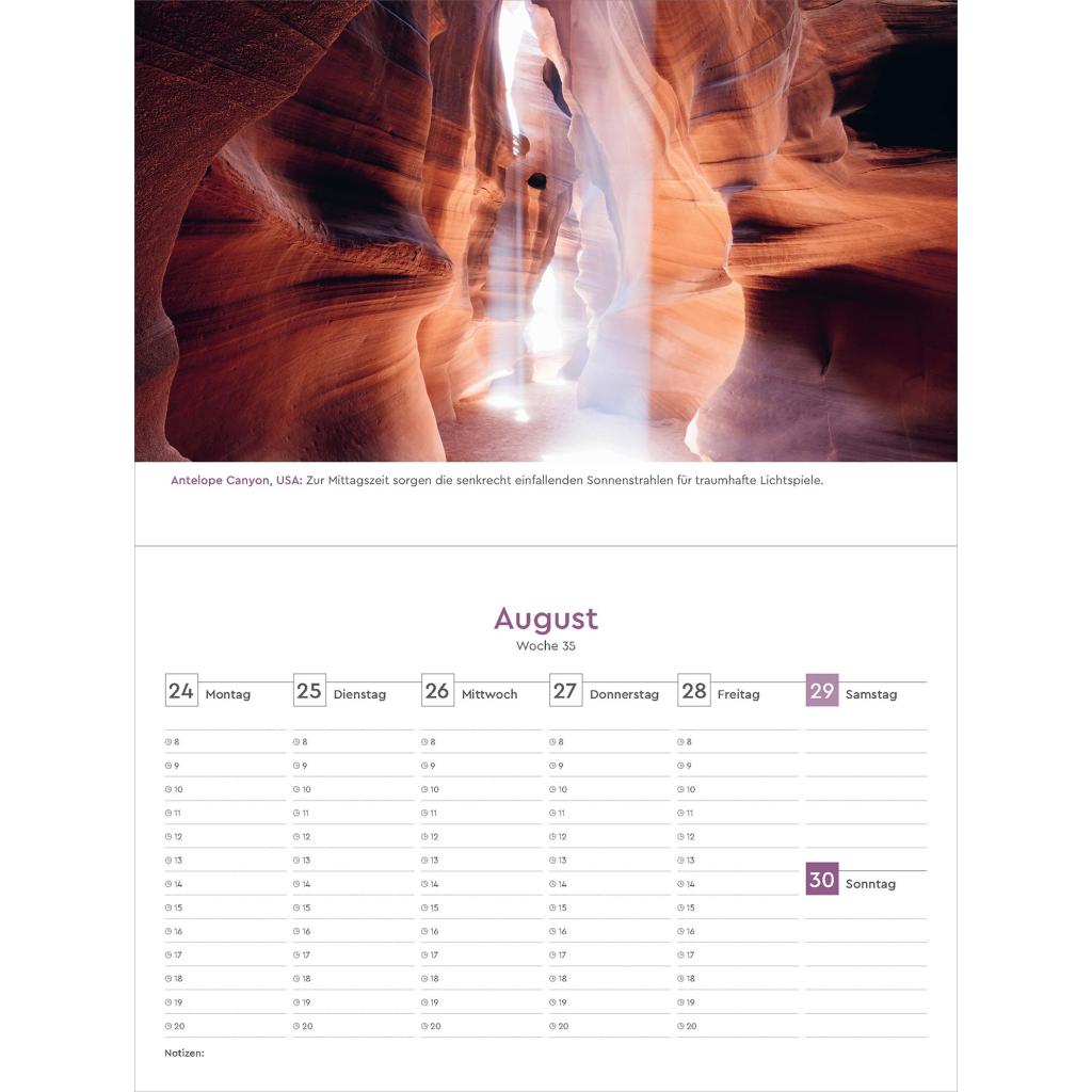 Wochenkalender mit faszinierenden Fotomotiven und einem praktischen Terminplaner