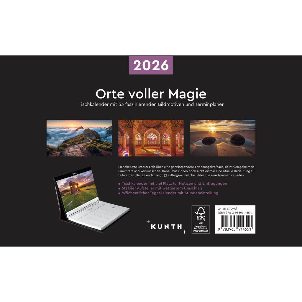 | Keyword: | Bildkalender 2026; Fotokalender 2026; Kalender; Kalender 2026; Kraftorte; Kraftplätze; Landschaftsfotografie; Naturfotografie; Terminplaner 2026; Tischkalender 2026; Wochenplaner 2026; magische Orte; mystische Orte; sagenumworbene Orte |