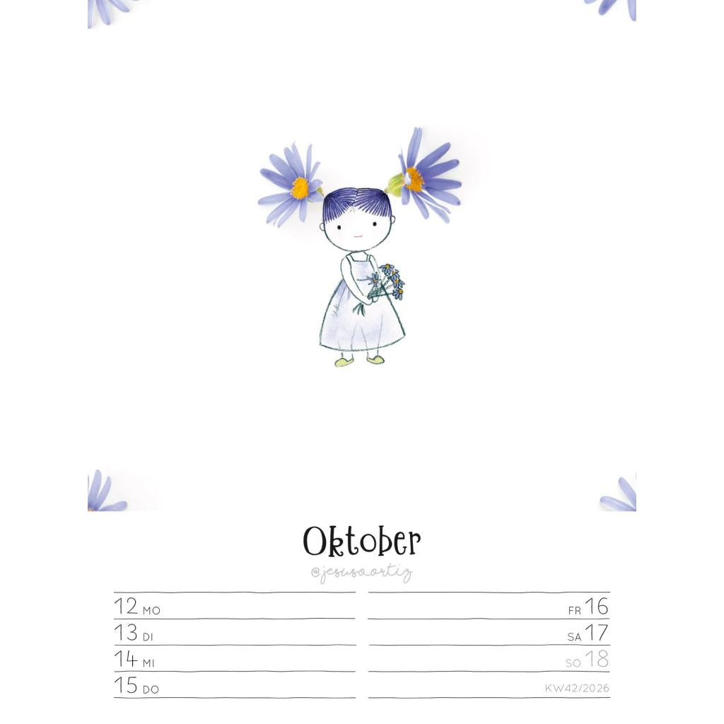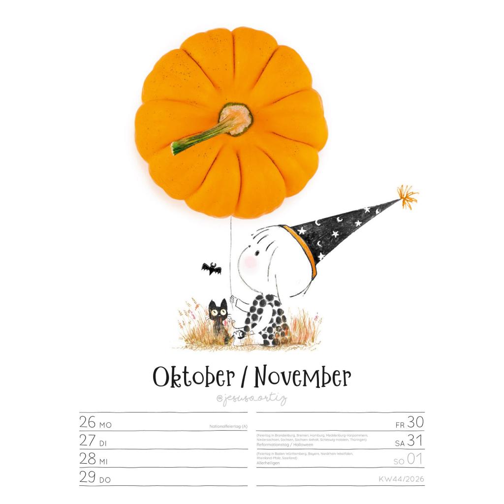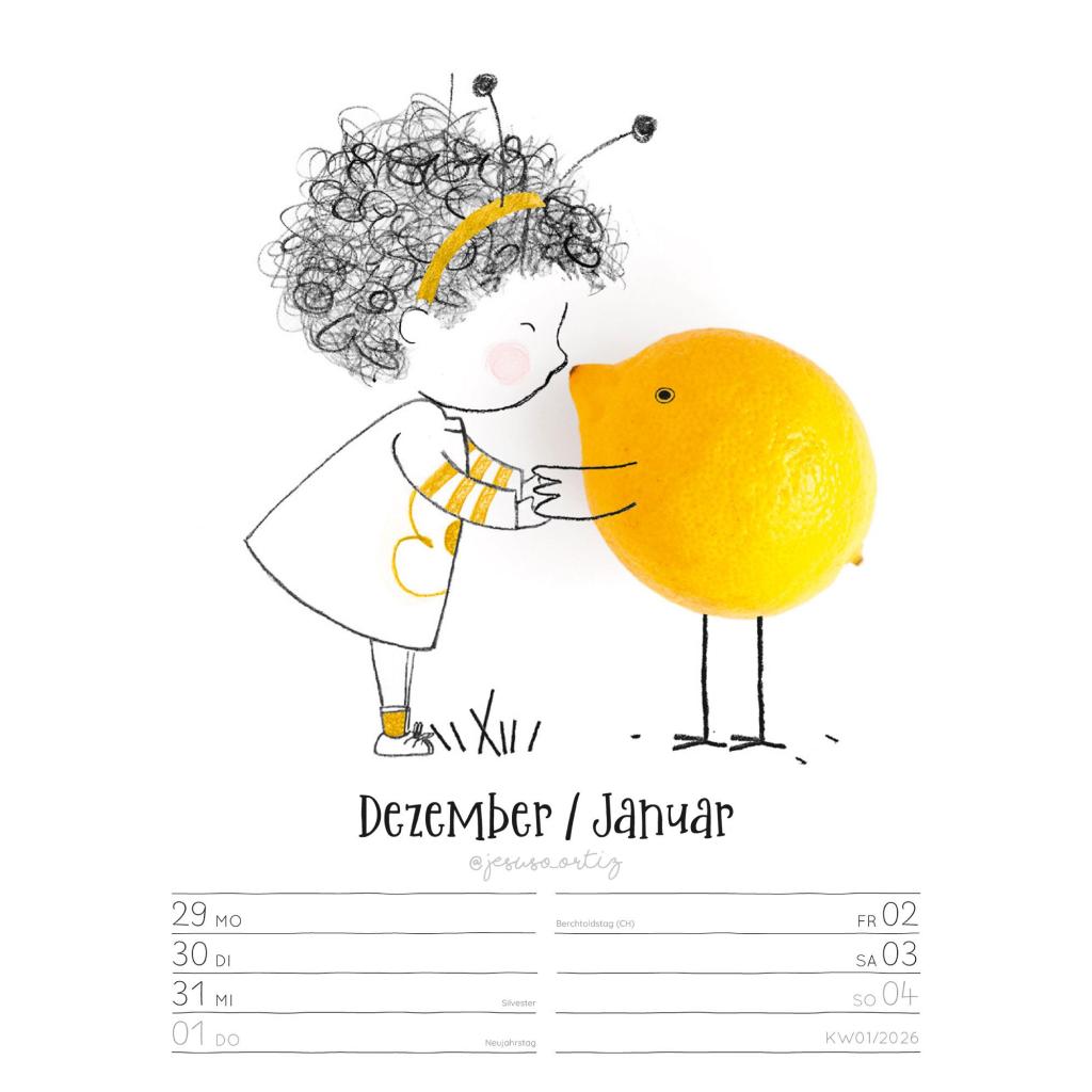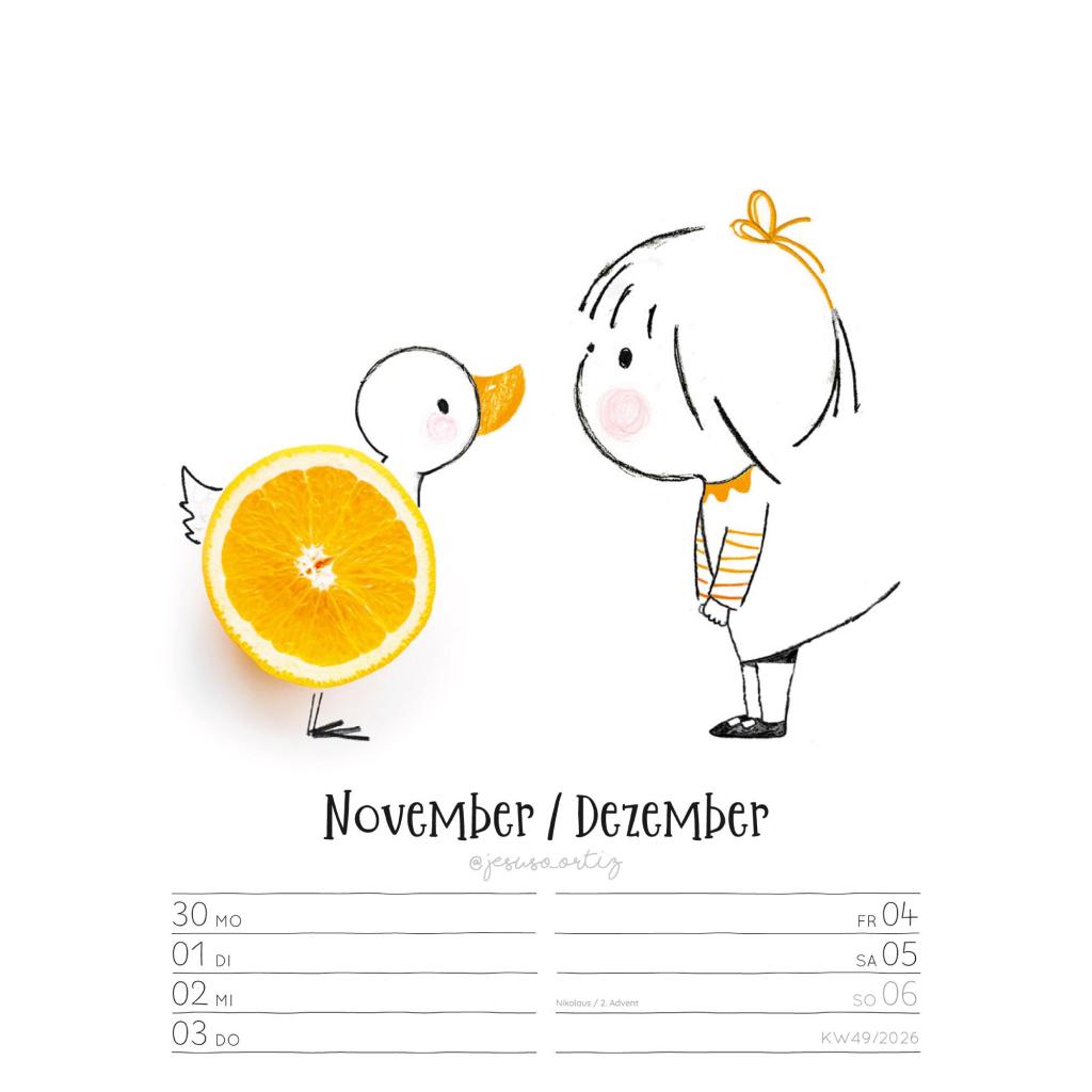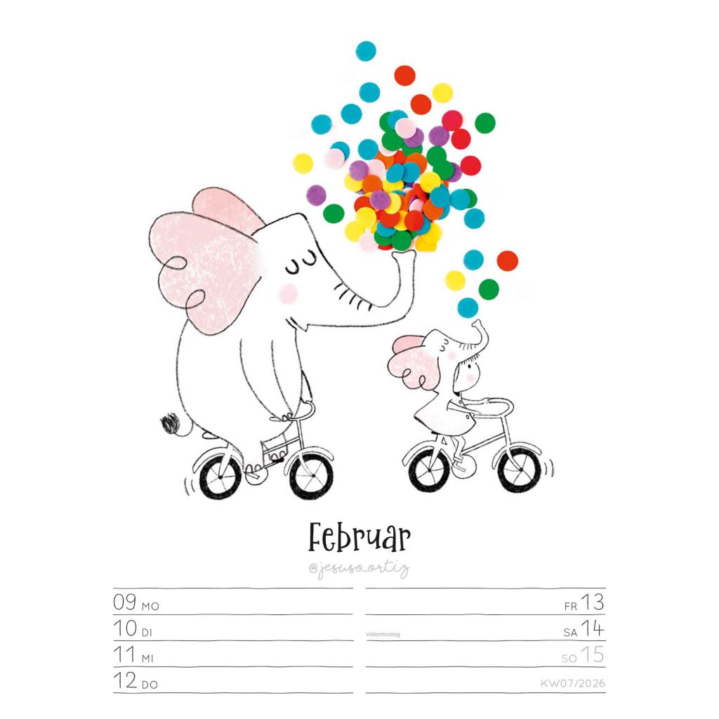 Niedlicher Wochenkalender nicht nur für Kinder im Hochformat (25x33 cm) | Illustrationen von Jesuso Ortiz