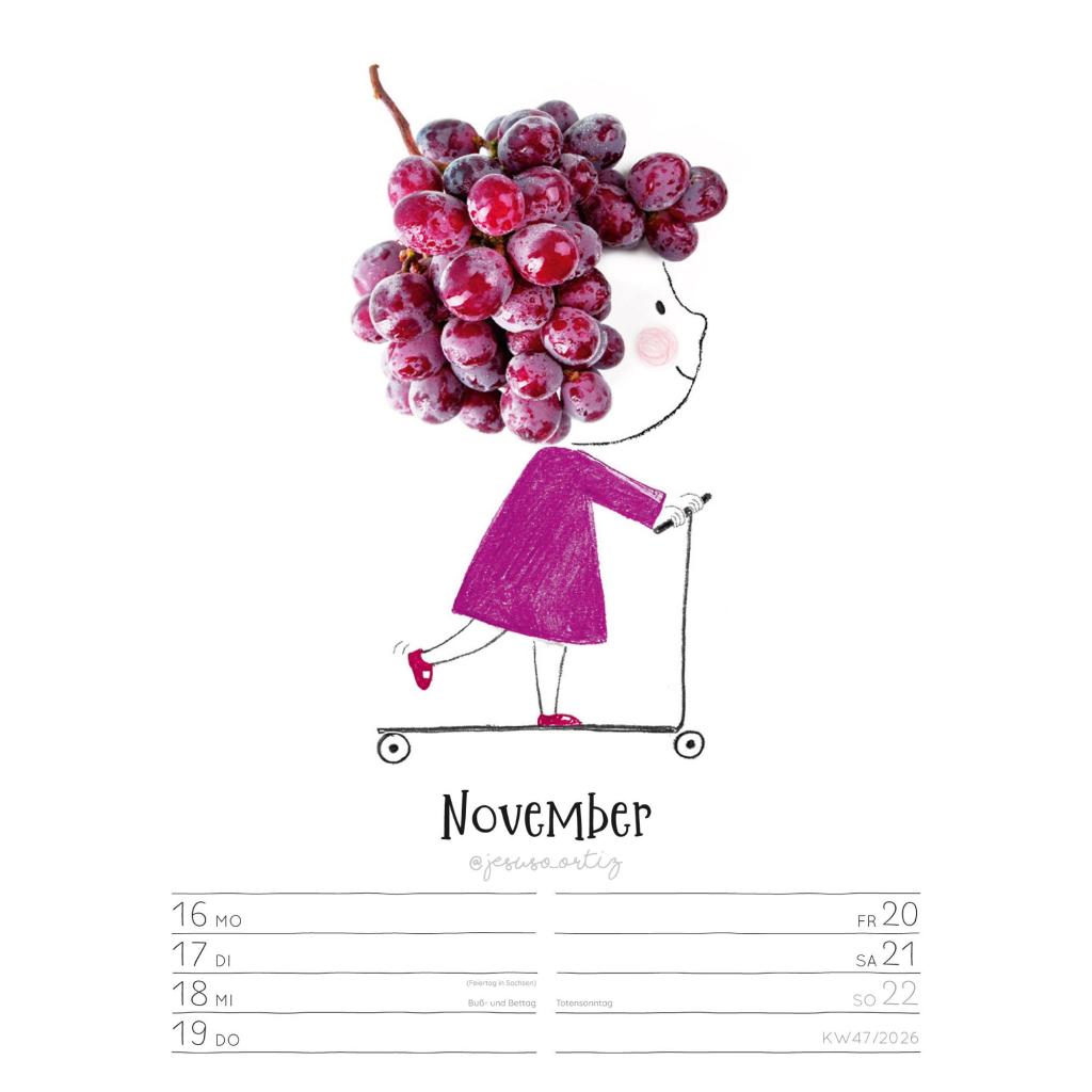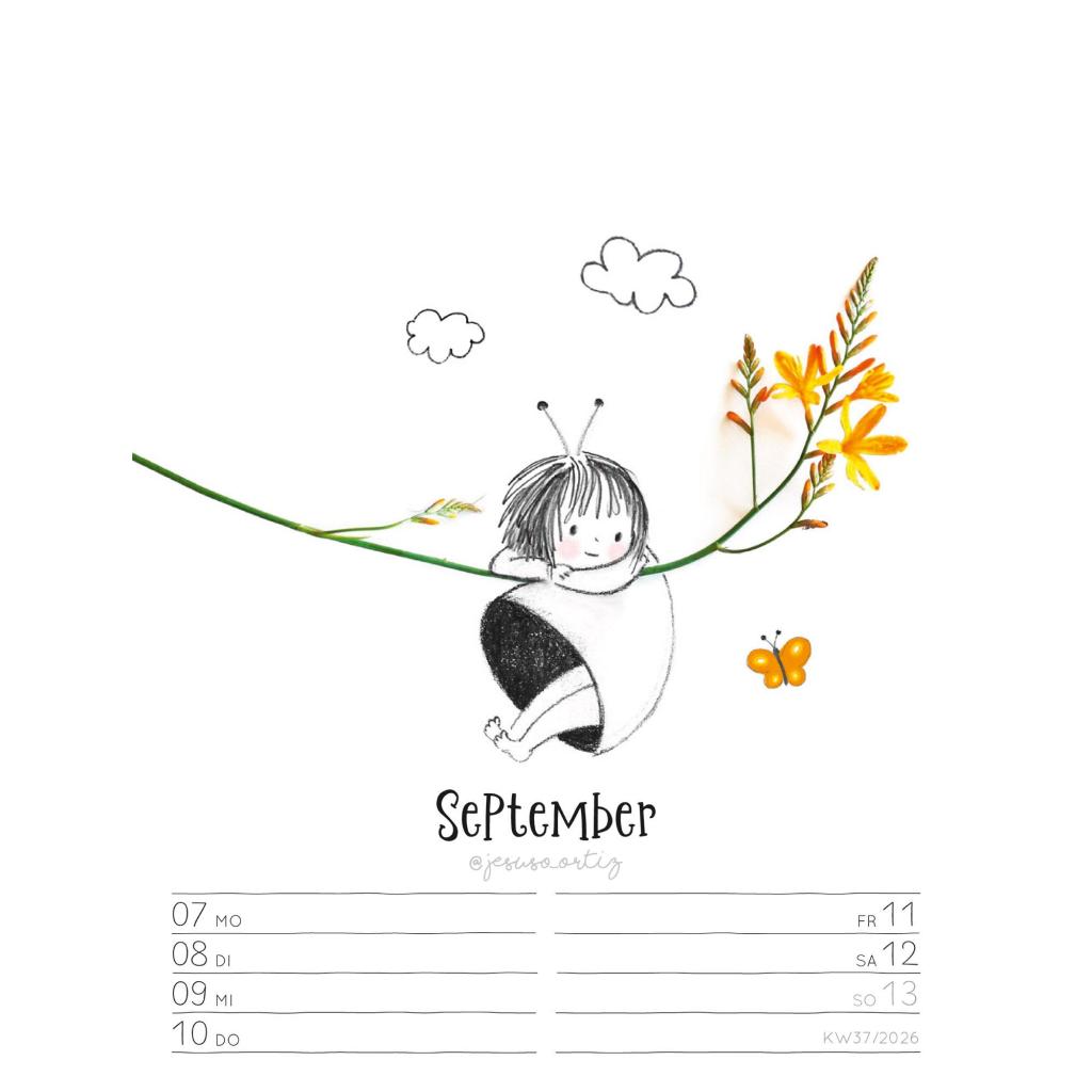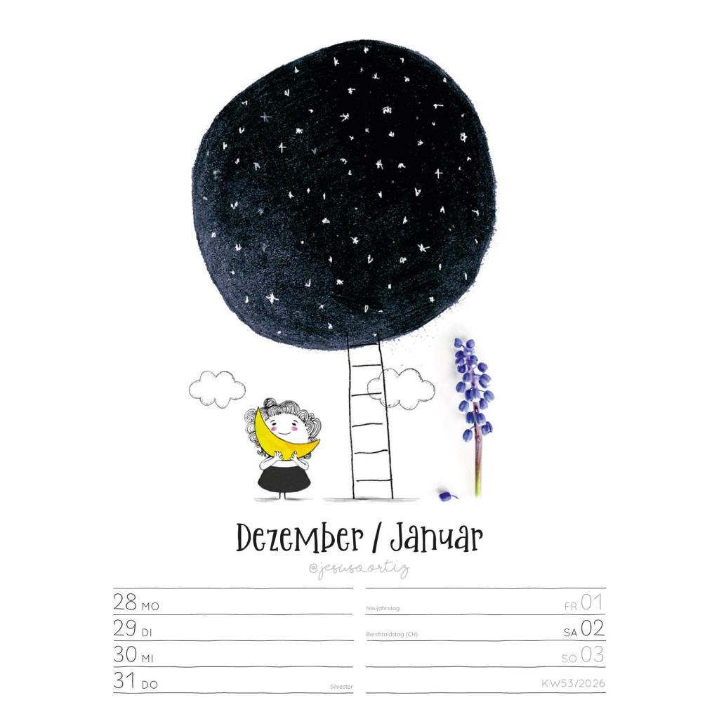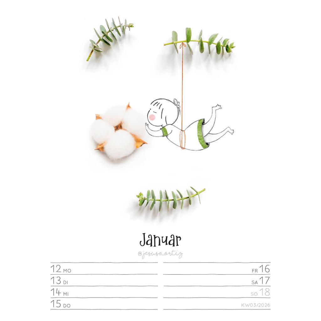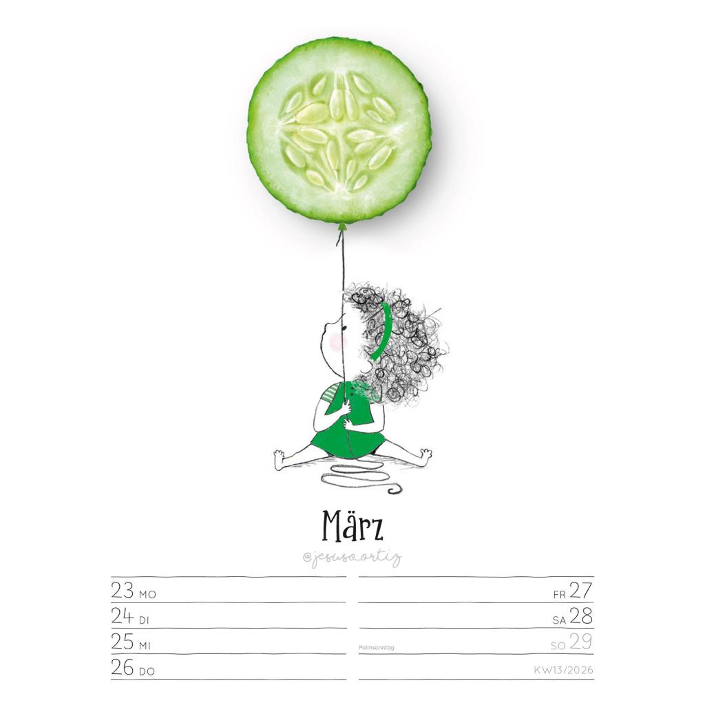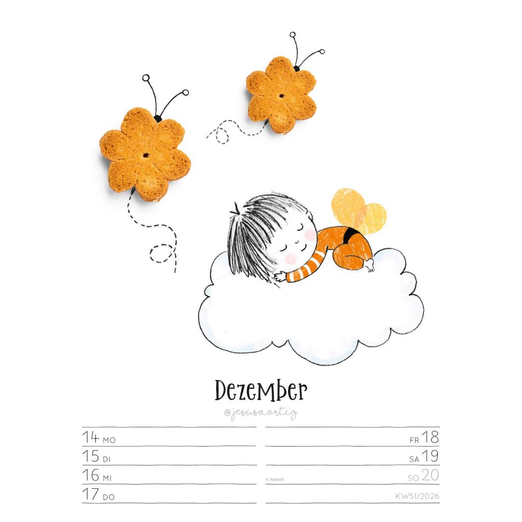 Niedlicher Wochenkalender nicht nur für Kinder im Hochformat (25x33 cm) | Illustrationen von Jesuso Ortiz