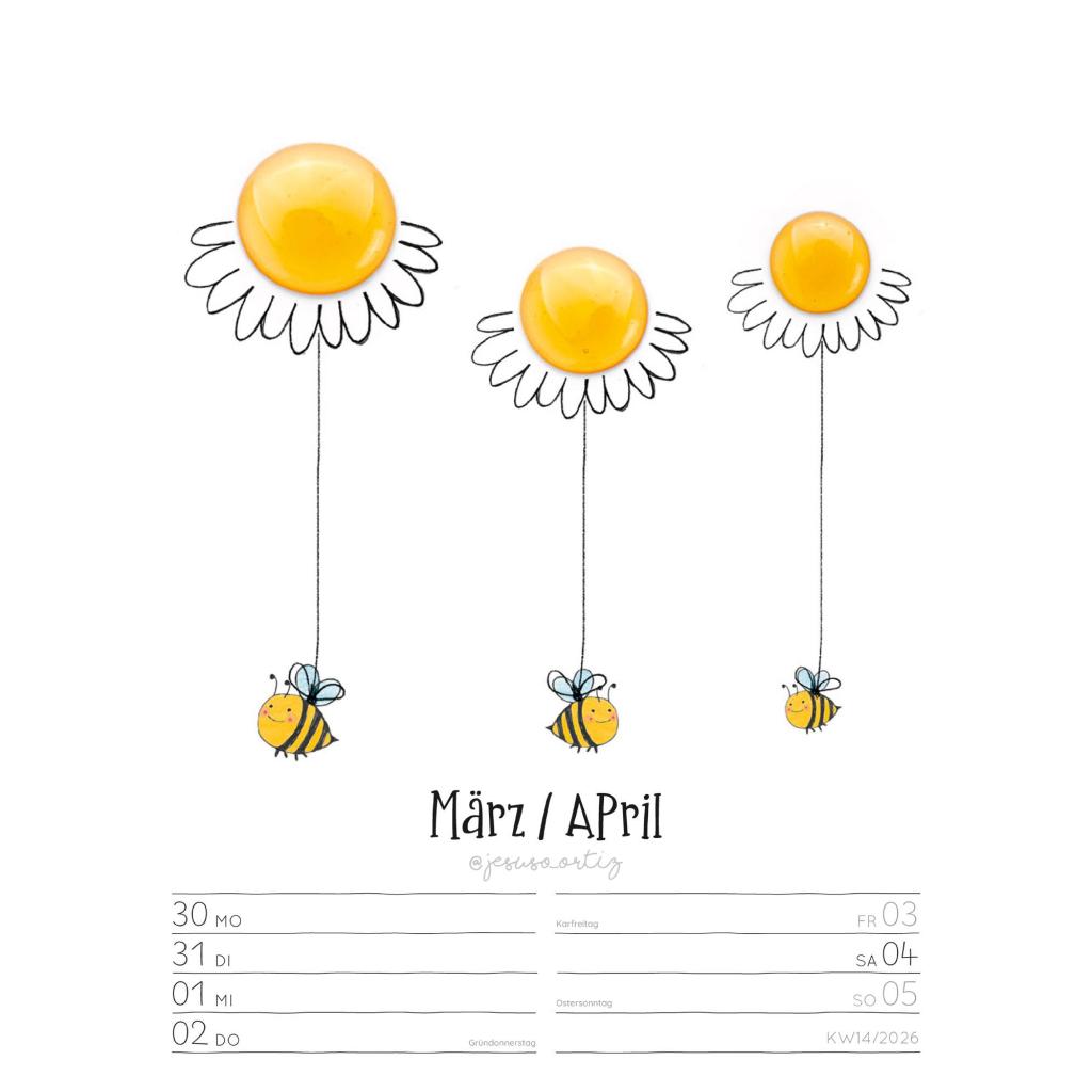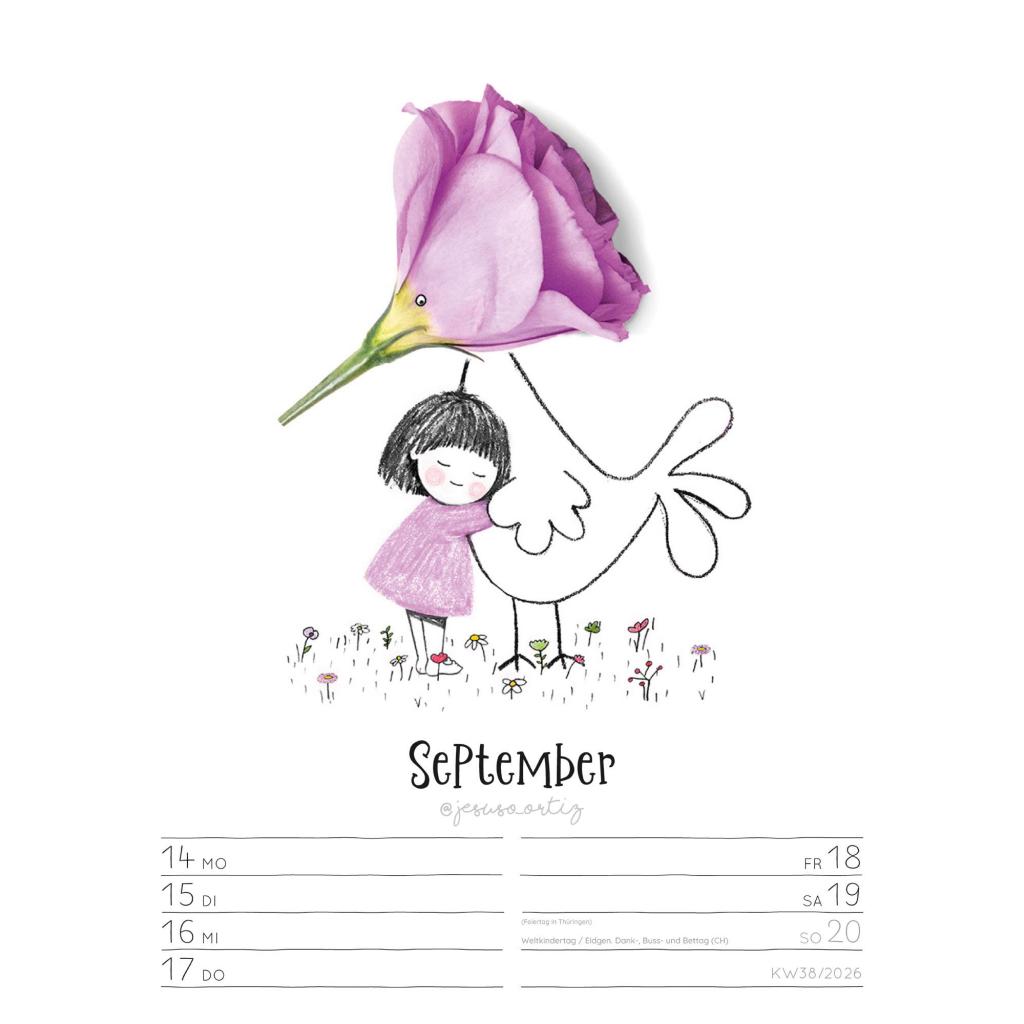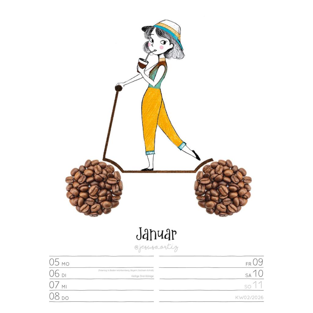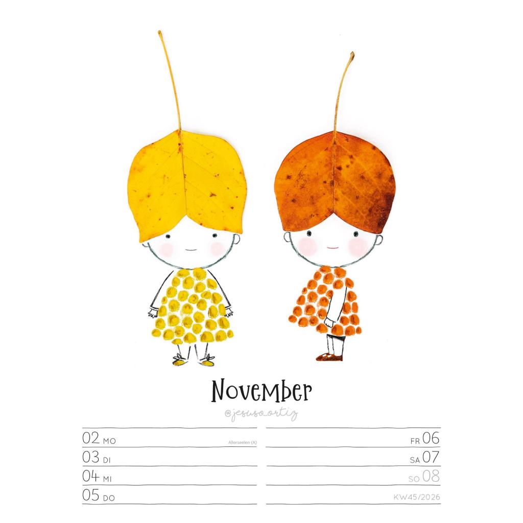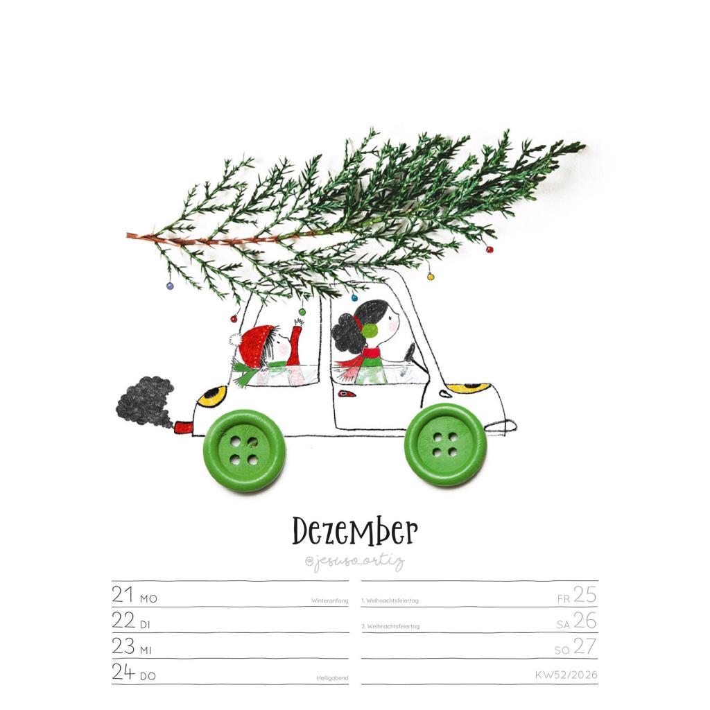 Niedlicher Wochenkalender nicht nur für Kinder im Hochformat (25x33 cm) | Illustrationen von Jesuso Ortiz