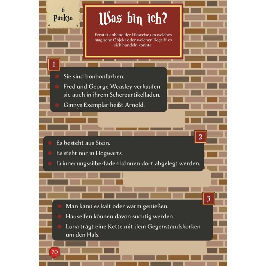 | Keyword: | Dumbledore; Feuerkelch; Geschenkbuch; Harry Potter; Harry Potter Fans; Harry Potter Rätsel; Hermine; Hogwarts; JK Rowling; Knobeln; Patronus; Patronuszauber; Potter-Fans; Potterhead; Potterheads; Quiz; Quizbuch; Quizfragen; Ron; Rätsel; Rätselbuch; Rätselheft; Rätselspaß; Spiel; Spielebuch; Winkelgasse; Zauberer; Zaubersprüche; Zauberstab; zaubern |