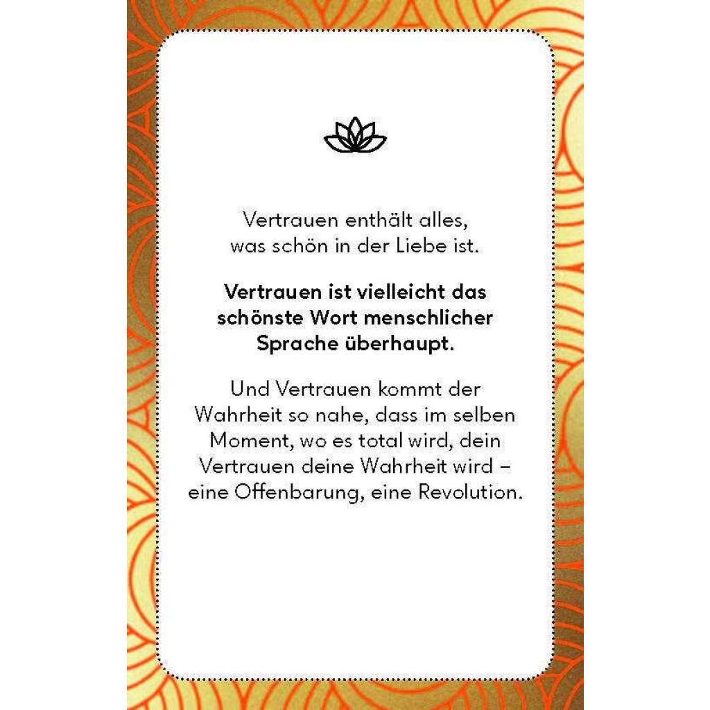 | Keyword: | Aura; Chakra; Impulsgeber; Karten Lebensweisheiten; Karten Osho; Karten der Erkenntnis; Karten für die Seele; Karten für die Stille; Karten philosophische Gedanken; Karten spirituelle Gedanken; Karten zur Inspiration; Karten östliche Weisheit; Kartenlegen; Kartenset; Kostbarkeiten für die Seele; Lebensfreude; Osho Kartenset; Osho Kartenset deutsch; Positives Denken; Seelenbotschaften; Selbsterkenntnis; Vertrauen; Weisheitskarten; inspirierende Worte Osho |