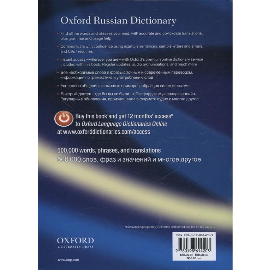 This brand-new edition of the Oxford Russian Dictionary is fully updated with hundreds of new words, a correspondence section, and cultural notes. It is ideal for the serious student of Russian, or for the Russian speaker learning English.
