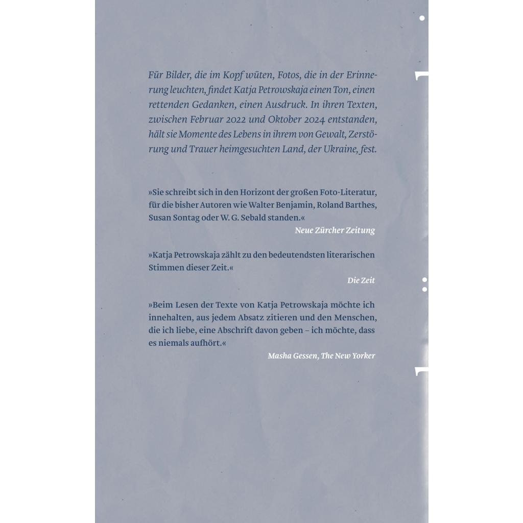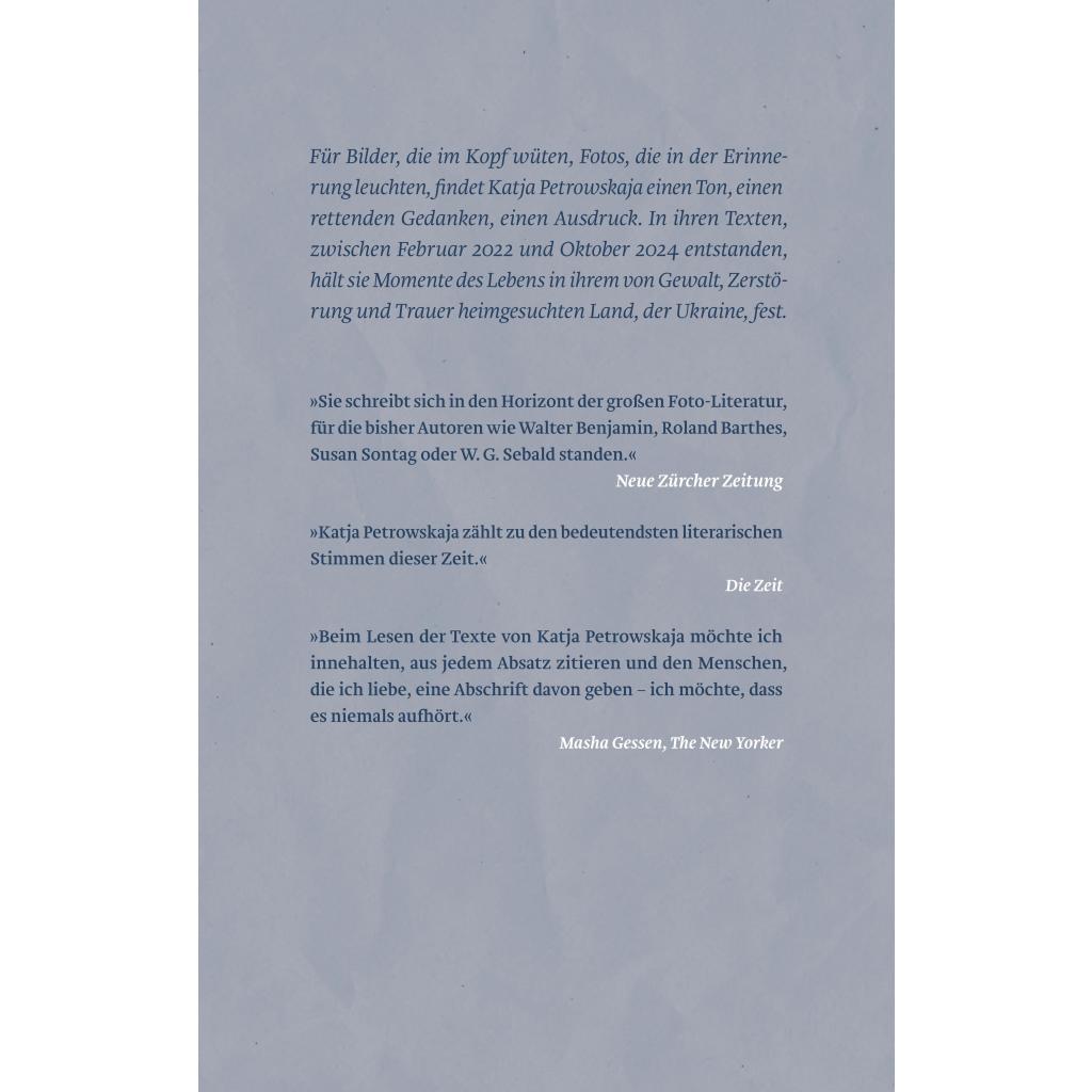 | Keyword: | Angriffs-Krieg; Aspekte-Literatur-Preis; Bild der Woche; Das Foto schaute mich an; FAS; Foto-Kolumnen; Frankfurter Allgemeine Sonntagszeitung; Gustav-Regler-Preis 2023; Ingeborg-Bachmann-Preis; Kaukasus; Kiew; Menschenrechtspreis 2022; Premio Strega Europeo 2015; Serhij Zhadan; Ukraine; Vielleicht Esther |