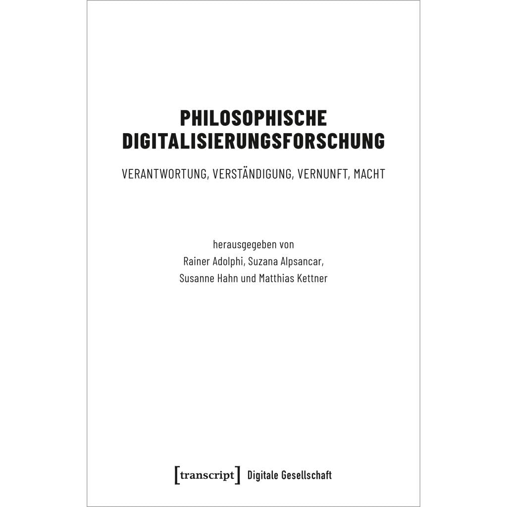 | Keyword: | Algorithm; Algorithmus; Artificial Intelligence; Communication; Culture; Digital Ethics; Digital Media; Digitale Ethik; Digitale Medien; Digitalisierung; Digitalization; Ethics; Ethik; Kultur; Kulturprozess; Künstliche Intelligenz; Macht; Media Philosophy; Medienphilosophie; Philosophie; Philosophy; Philosophy of Technology; Power; Reason; Responsibility; Roboter; Social Media; Technikphilosophie; Verantwortung; Vernunft; Verständigung |