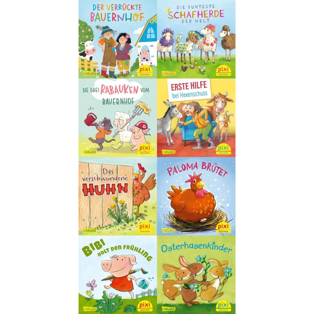 Wenn der Frühling kommt, geht das verrückte Treiben auf dem Bauernhof wieder so richtig los. Da laufen bunte Schafherden und kleine Rabauken über den Hof und Hühner verschwinden plötzlich. Na, wenn das bloß nicht in einem Hexenschuss endet! Finde es heraus in diesen acht Frühlings- und Ostergeschichten! In der Pixi-Serie "Frühling auf dem Bauernhof " sind folgende Bücher enthalten: Der verrückte Bauernhof Die bunteste Schafherde der Welt Die drei Rabauken vom Bauernhof Erste Hilfe bei Hexenschuss Das verschwundene Huhn Paloma brütet Bibi holt den Frühling Osterhasenkinder