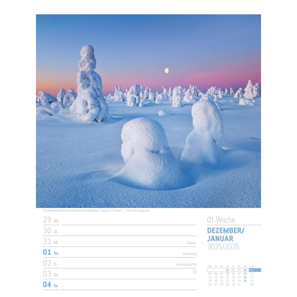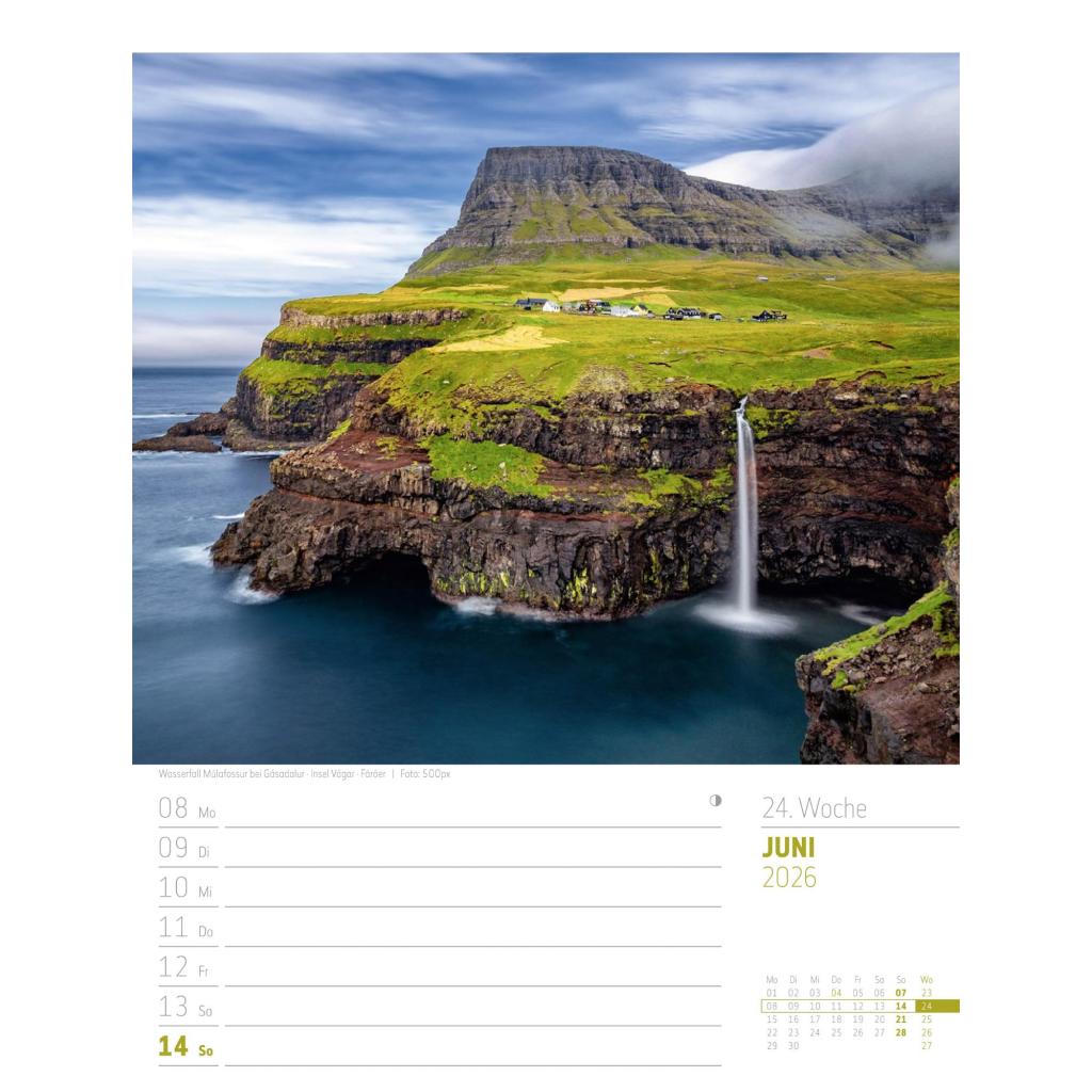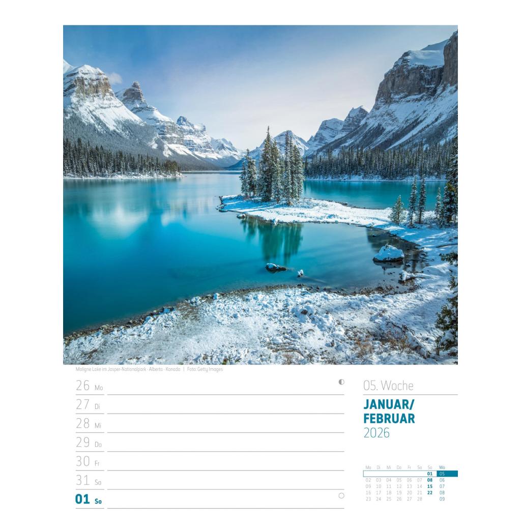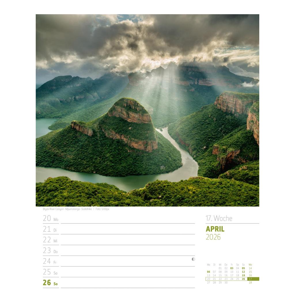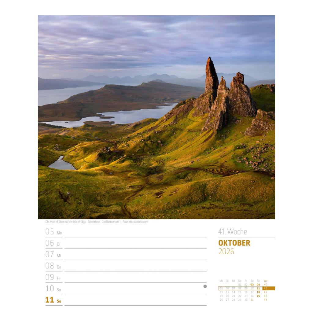 Bildgewaltiger Landschafts-Wochenkalender im Hochformat (25x33 cm) | Mit Rätseln