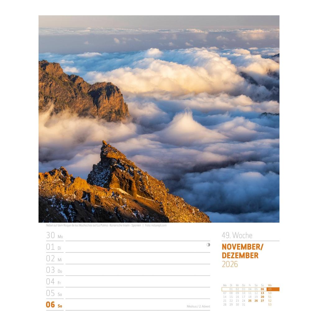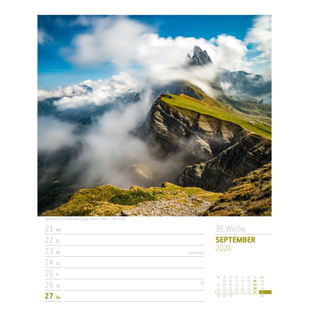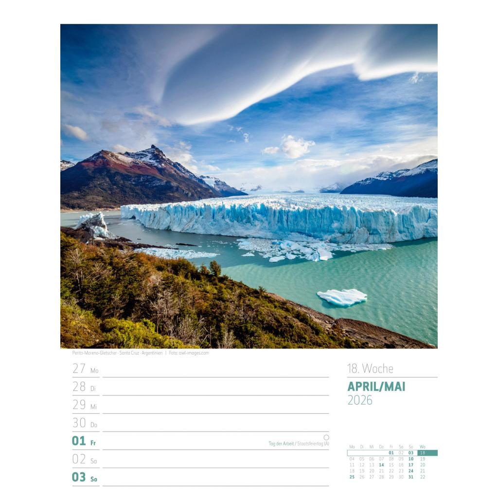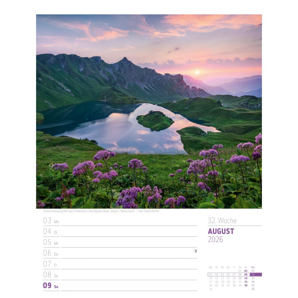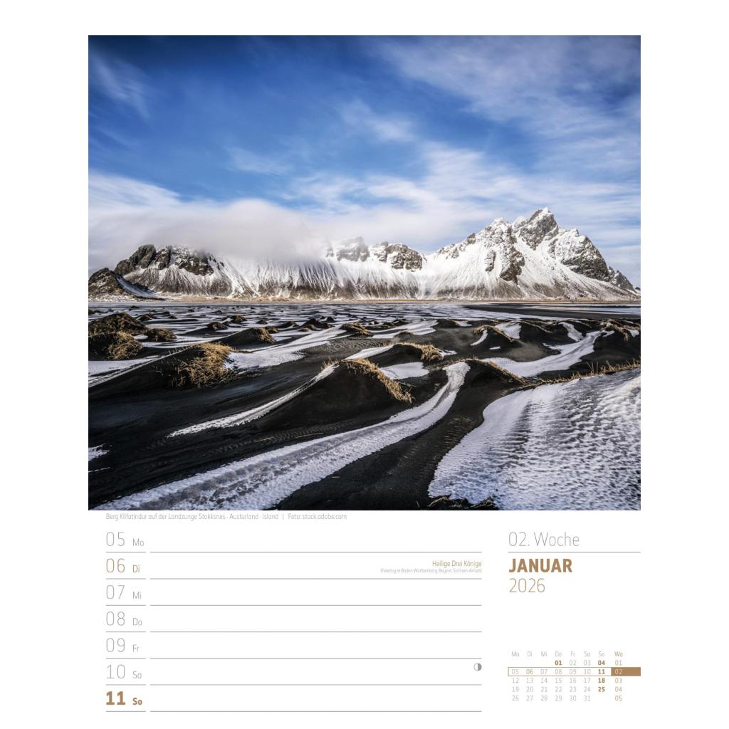 Bildgewaltiger Landschafts-Wochenkalender im Hochformat (25x33 cm) | Mit Rätseln