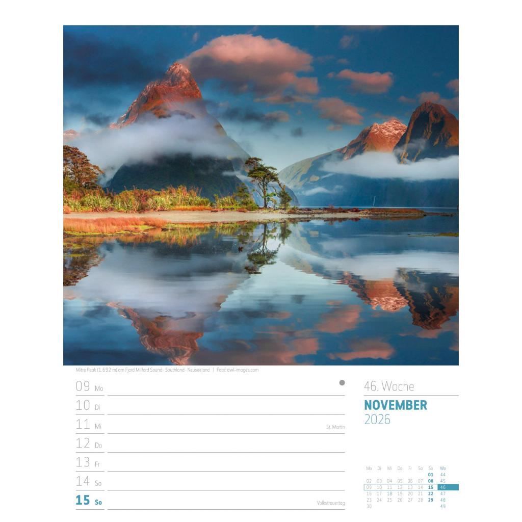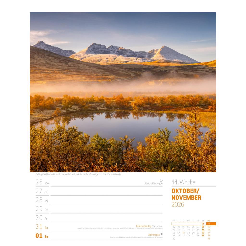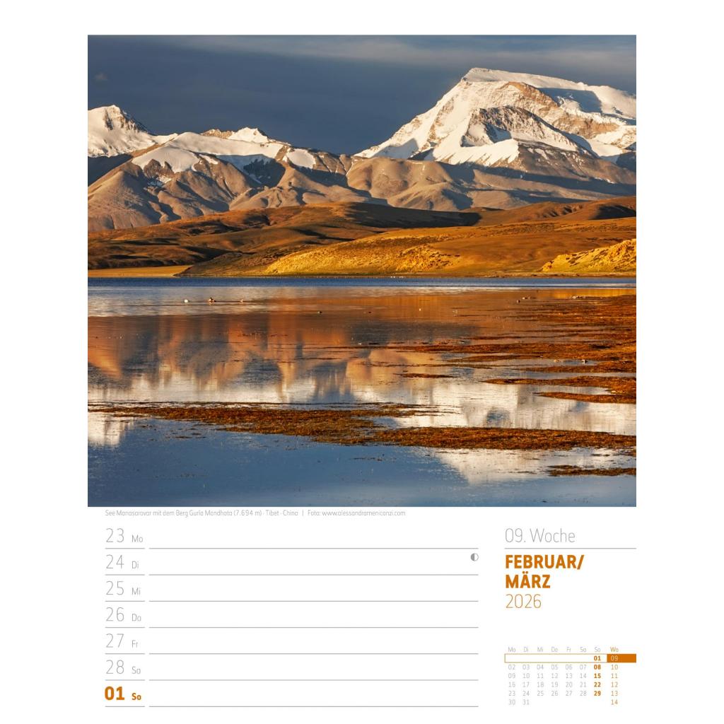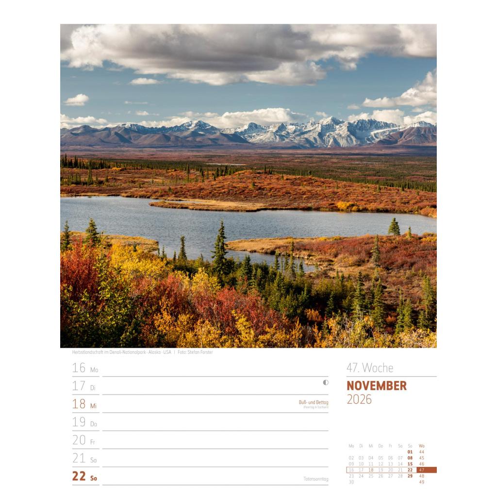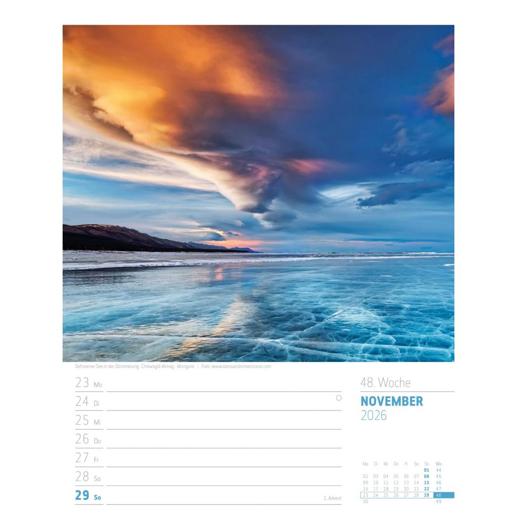 Bildgewaltiger Landschafts-Wochenkalender im Hochformat (25x33 cm) | Mit Rätseln