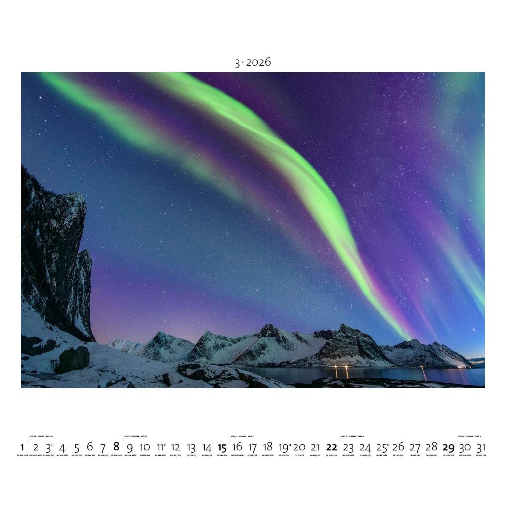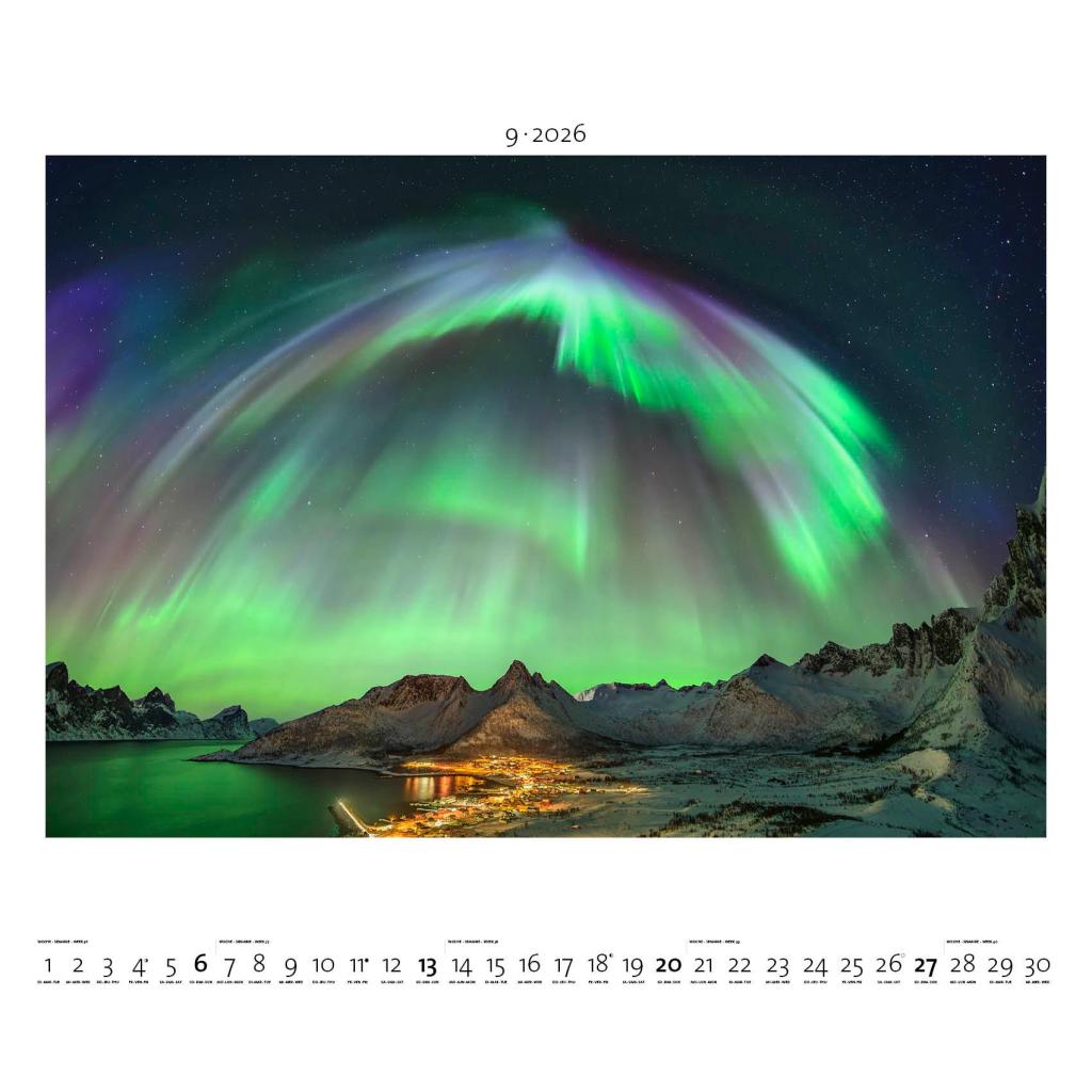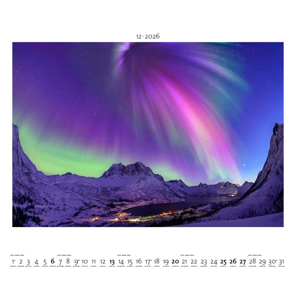 | Keyword: | Aurora; Aurora Borealis Bilder; Lichtphänomene; Naturschauspiel Kalender; Nordlicht Wandkalender; Nordlichter; Palazzi Kalender 2026; Polarlicht Kalender; großformatiger Kalender; skandinavische Polarlichter |