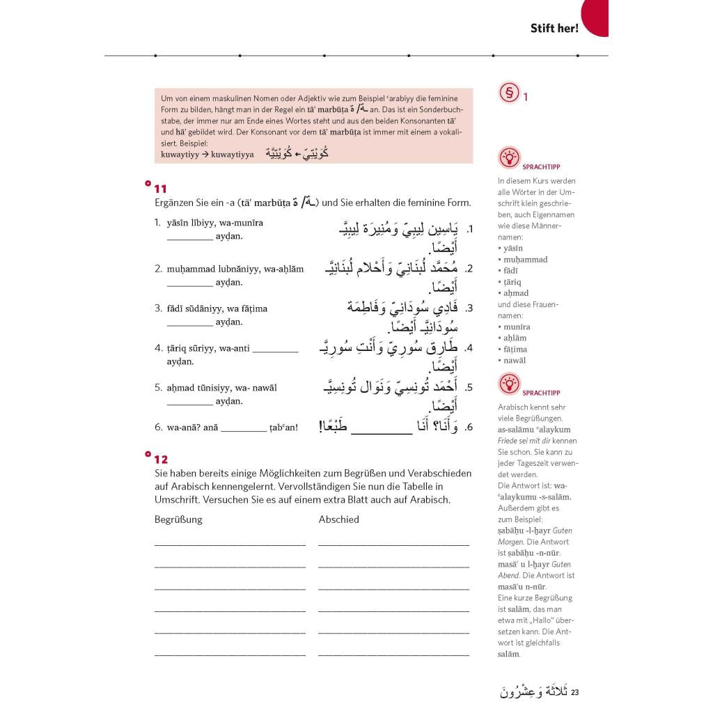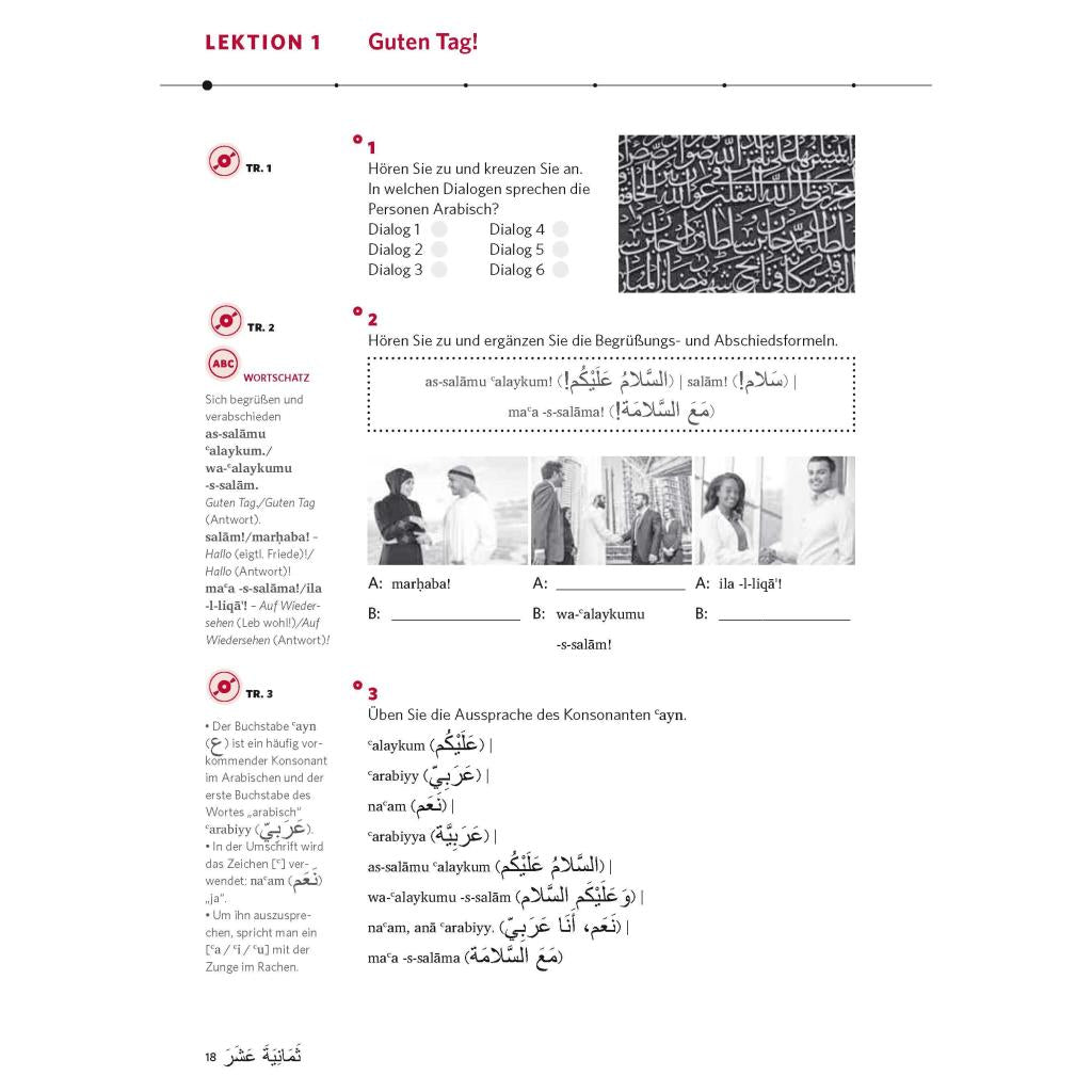 Der Arabisch-Intensivkurs für den Einstieg – schnell und multimedial Ihr Ziel: Arabisch sprechen, verstehen und schreiben können – schnell und effektiv! Unsere Methode: Sie lernen in kleinen Portionen und werden in abwechslungsreichen Übungen aktiv gefordert. Wenn Sie wollen, reden Sie mit diesem Intensivkurs nach vier Wochen schon richtig mit. Ihr Vorteil: Alles, was Sie zum Lernen brauchen, finden Sie in diesem Kurs. Kompakte Erklärungen, authentische Hörtexte und zahlreiche Übungen zum Sprechen, Hören und Schreiben führen Sie schnell zum Ziel. Audio-Material auf MP3-CD und als MP3-Download : Trainieren Sie Aussprache und Hörverstehen. Für erste bis elementare Grundkenntnisse (Niveau A1-A2).