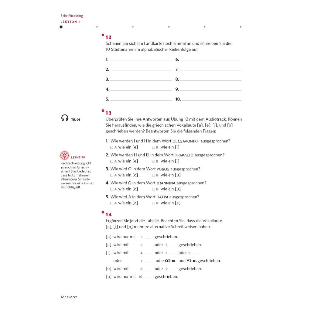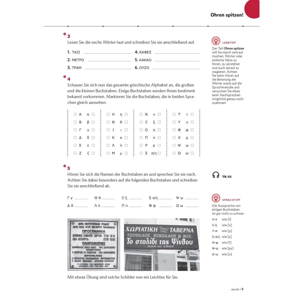 Ihr Schlüssel zum Erfolg mit dem Intensivkurs für den Einstieg Ihr Ziel: Griechisch sprechen, verstehen und schreiben können - schnell und effektiv! Unsere Methode: Sie lernen in kleinen Portionen und werden in abwechslungsreichen Übungen aktiv gefordert. Wenn Sie wollen, reden Sie mit diesem Intensivkurs nach vier Wochen schon richtig mit. Ihr Vorteil: Alles, was Sie zum Lernen brauchen, finden Sie in diesem Kurs. Kompakte Erklärungen, authentische Hörtexte und zahlreiche Übungen zum Sprechen, Hören und Schreiben führen Sie schnell zum Ziel. Alle Zusatzmaterialien (Audio und Aussprachetraining) finden Sie ganz praktisch Seite für Seite in der Scan2Learn-App! Niveau A1-A2: Erste (A1) bis elementare Grundkenntnisse (A2)