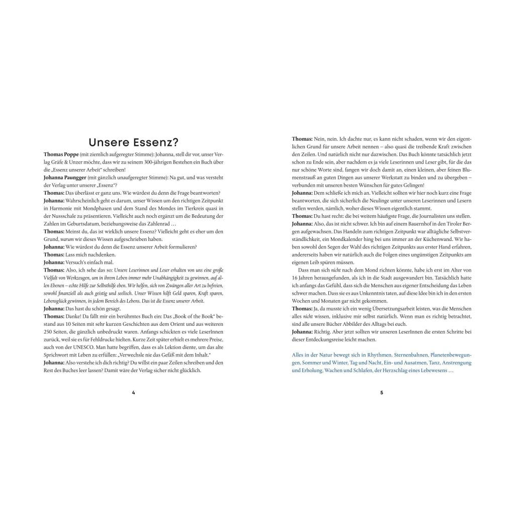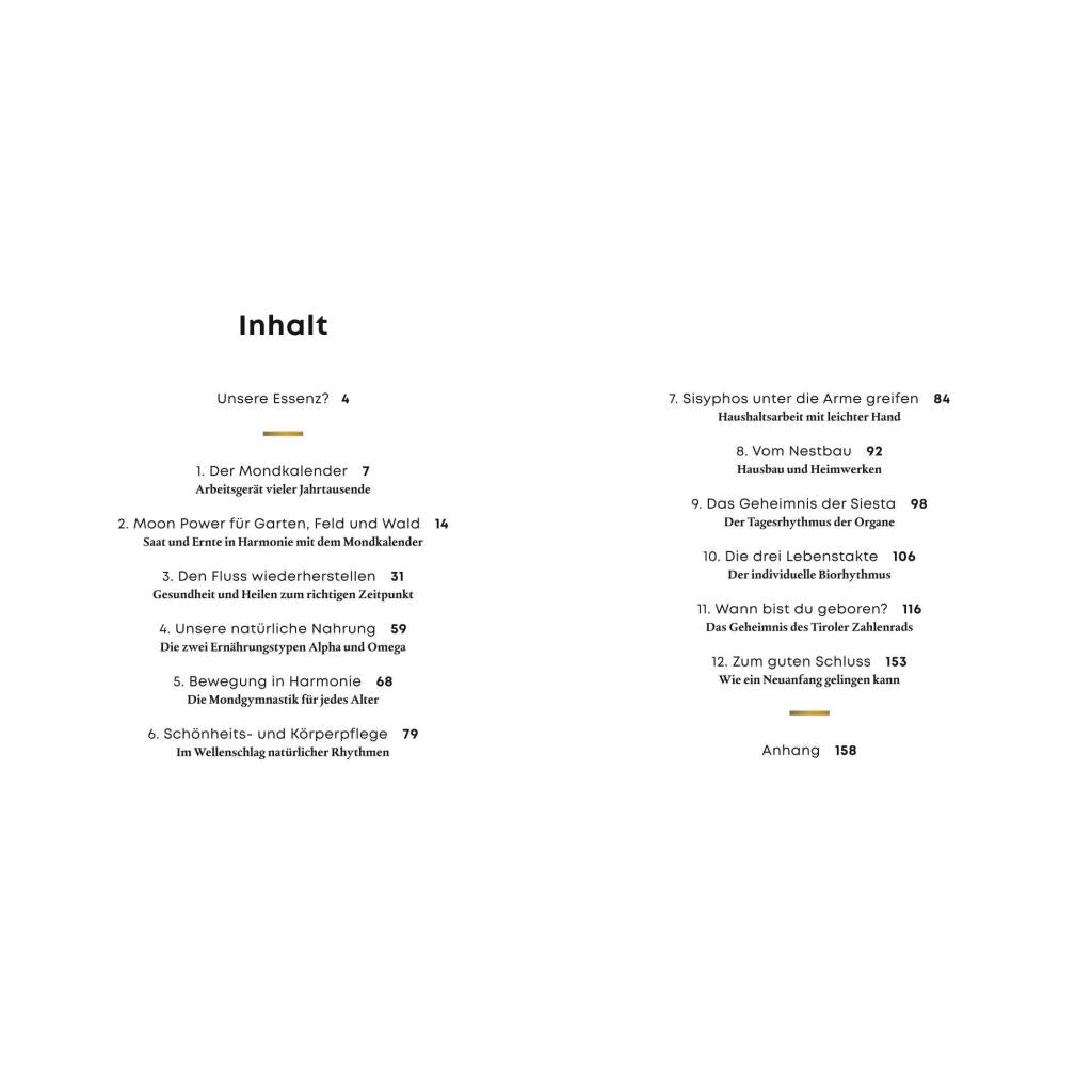 Johanna Paungger und Thomas Poppe haben es sich zur Aufgabe gemacht, uns das alte Wissen um die Natur- und Mondrhythmen vertraut zu machen. In diesem Buch möchten die Autoren Schritt für Schritt dort hinführen und gleichzeitig Inspiration bieten, im Laufe der Zeit in die Tiefe zu gehen. Sie beleuchten alle Lebensbereiche, in denen diese Kenntnisse von langfristigem Wert sind, wie zum Beispiel Heilen aus eigener Kraft bei Mensch und Tier, wahrhaft gesunde Ernährung, harmonische Bewegung oder das Geheimnis eines erfolgreichen Neuanfangs. Und sie vermitteln auch, wie wir mithilfe des Tiroler Zahlenrads unser körperliches und seelisches Immunsystem stärken. Ein wahrer Schatz nicht nur für die Gegenwart, sondern auch für die Zukunft!