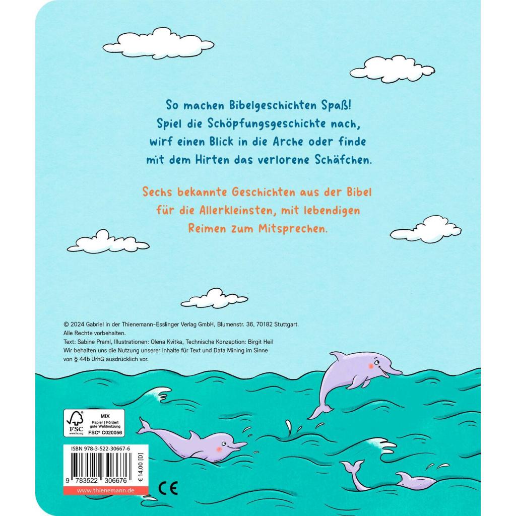 | Fachschema: | Bibel~Heilige Schrift~Schrift, Die (Heilige Schrift)~Christentum~Weltreligionen / Christentum~Abzählreim~Kinderreim~Nursery Rhyme~Reim / Kinderreim~Bilderbuch~Bilderbuch / Pappbilderbuch, Leporellos |