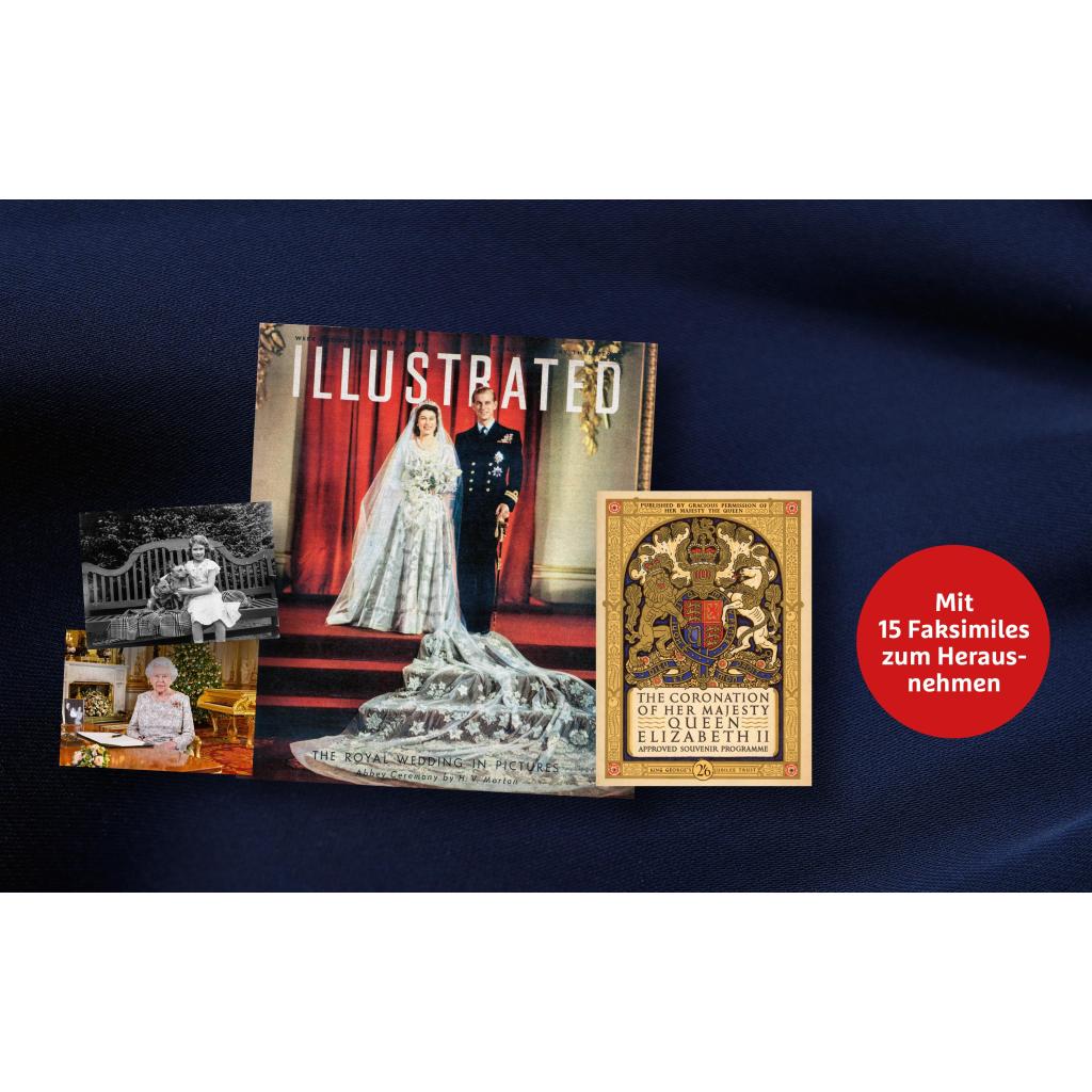 Queen Elizabeth II. war die am längsten regierende Monarchin in der Geschichte Englands und für viele Menschen ein einzigartiges Vorbild. 70 Jahre lang erfüllte sie ihre königlichen Pflichten mit Würde und Hingabe, in schwierigen und triumphalen Zeiten. Dieses Buch ist eine Verneigung vor dieser bemerkenswerten Frau, es zeigt sie als Prinzessin, Königin, Ehefrau, Mutter, Großmutter und nicht zuletzt als Staatsfrau. Dieser prächtig bebilderte Band präsentiert über 200 Fotos aus dem langen Leben der Queen: von ihrer Kindheit über die Krönung bis zum Platin-Jubiläum, den Hochzeiten ihrer Kinder und Enkelkinder und Treffen mit zahllosen Staatsoberhäuptern. Mit 15 Faksimiles zum Herausnehmen.