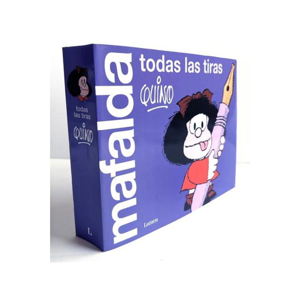 Las tiras de Mafalda en un solo volumen. Polémica, concienciada y encantadora. Así es el personaje más entrañable del catálogo de Lumen. Ahora, por primera vez, presentamos en un solo volumen todas las tiras de la niña argentina más famosa de todos los tiempos. De la primera a la última tira, podrás disfrutar de Mafalda, sus amigos y su familia.
