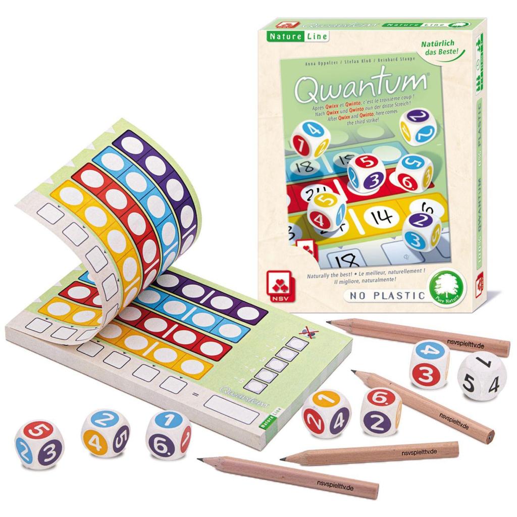 Aller guten Dinge sind drei. Auf unsere preisgekrönten Würfelspiele-Hits Qwixx und Qwinto folgt nun das i-Tüpfelchen. Genauso einfach. Genauso spannend. Und natürlich keine Wartezeiten. Die eingetragenen Zahlen müssen immer höher werden. Und dann wieder niedriger. Und genau diese Gratwanderung entscheidet über alles. Nicht zu gierig sein. Ein Quäntchen Glück haben. Und ein Qwantum Trost - für die Mitspieler! Großartig! UND 100 % plastikfrei, denn das gute Gewissen spielt mit!