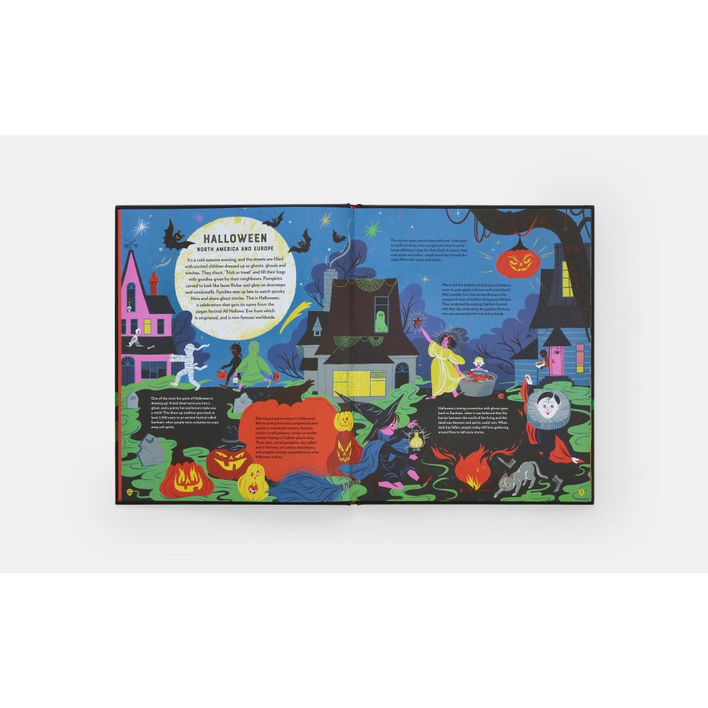 Welcome to the spookiest, and most fun, book of celebrations from around the world! You'll have heard of Halloween, and maybe Día de Muertos, or Obon too, but did you know there are spooky festivals all over the world? Across every continent there are festivals that celebrate and honor spirits. Children will delight in discovering the stories behind these 21 amazing celebrations. With text that captures the joy in many of these festivals and the respectful nature of others, and stunning artwork with fun details to spot, children will learn all about the interesting ways these festivals are celebrated today. This is a brilliant book for 5-8-year-olds that doesn't just celebrate Halloween but can be enjoyed year-round. The text builds on children's knowledge of recognizable festivals and introduces them to others they may not have heard of. With playful text that celebrates cultural traditions, this book encourages children to be curious about and respectful of the world around them. Festivals featured: Awuru Odo (Nigeria); Basler Fasnacht - (Basel, Switzerland); Chuseok (South Korea;) Correfoc (Barcelona, Catalonia); Día de Muertos (Mexico); Fastelavn (Scandinavia, Iceland, Estonia and the Faroe Isles); Fèt Gede (Haiti); Fête des Masques (Mali); Gai Jatra (Nepal); Halloween (North America and Europe); Khamis al-Amwat (the Levant); La Festa di Ognissanti (Italy); Mari Lwyd (Wales); Matariki (Aotearoa New Zealand); Ouidah Vodun Festival (Ouidah, Benin); Pchum Ben (Cambodia); Pitru Paksha (South Asia); Samhain (Northern Europe); Setsubun (Japan); Walpurgis Night (Northern Europe); Zhongyuan (China). Ages 5-8 years