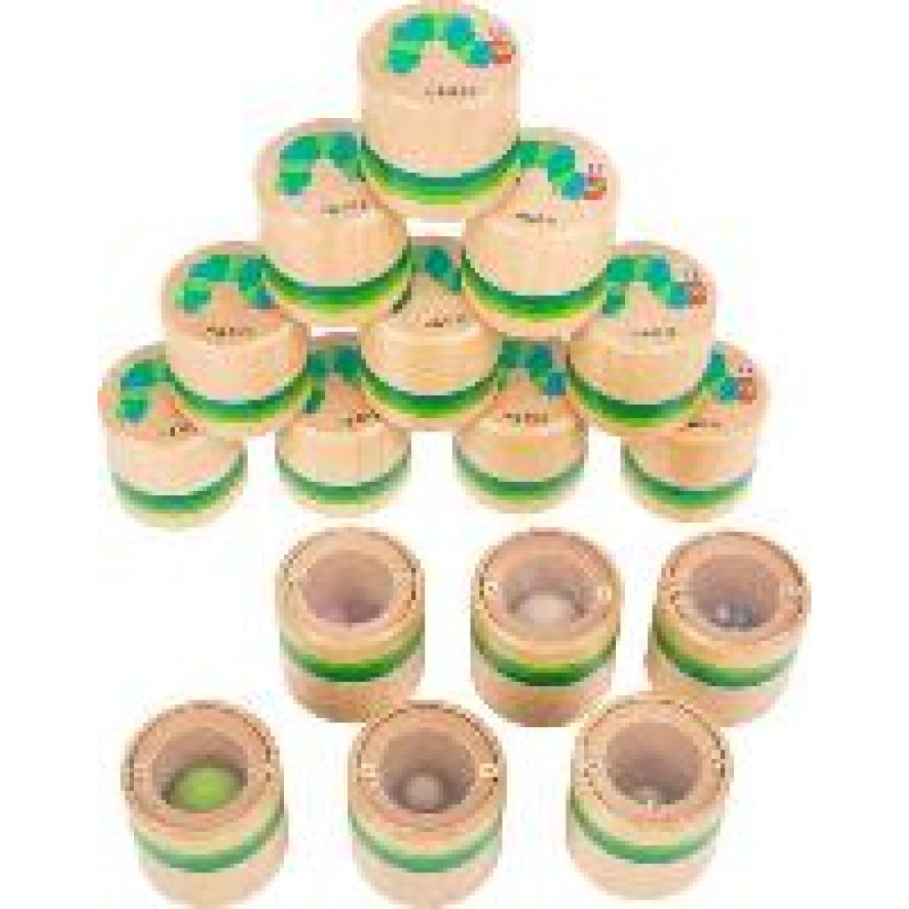 Hör mal genau hin! Bei diesem Hör-Memo im Raupe Nimmersatt-Design gilt es, Geräuschunterschiede zu erkennen und zu benennen. Durch Schütteln und genaues Hinhören ermitteln die Spieler, welche zwei Holzdosen des Sinnesspiels zusammengehören. Auch das Gewicht ist bei der Suche hilfreich! Durch die Scheibe auf der Unterseite der Dosen kann das Ergebnis kinderleicht kontrolliert werden. Ohren auf! Hier ist der Spielspaß für die ganze Familie vorprogrammiert. Wer hat am Ende die meisten Pärchen gesammelt?