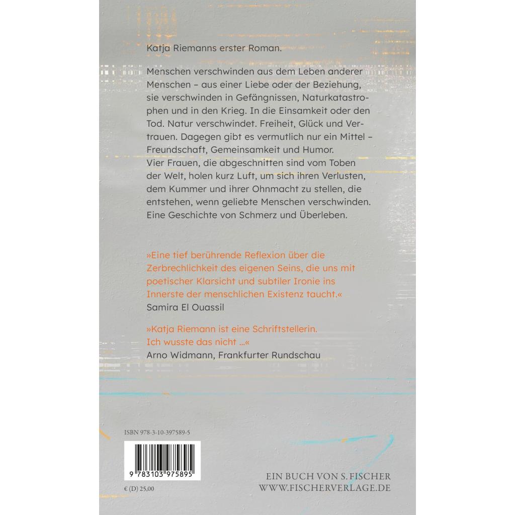 | Keyword: | Anspruchsvolle Literatur; Apokalypse; Berlin; Beziehungsprobleme; Brandenburg; Dystopie; Ein Buch von S. Fischer; Frauen; Klimakatastrophe; Liebeskummer; Männer und Frauen; Nebel; Suizid; Verschwinden; Zukunftsvision |