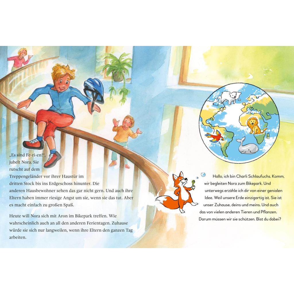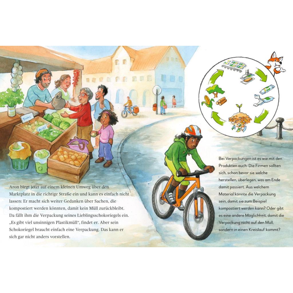 Ein Bilderbuch über das Cradle to Cradle Konzept und wie man damit die Welt retten kann. Ab 5 Jahren. Umweltverschmutzung, Klimawandel, Artensterben - wie lässt sich unsere Welt retten? Aron und Nora entdecken in diesem Buch die Lösung: das Cradle to Cradle-Prinzip. Wir müssen in geschlossenen Kreisläufen denken. Statt Müll zu produzieren müssen Materialien immer und immer wieder verwendet werden oder biologisch abbaubar sein. Beispiele aus der Circular Economy und Urban Mining werden dazu in diesem Buch beschrieben. Ein neunmalkluger Schlaufuchs begleitet Nora und Aron bei Ihrer Entdeckung und erklärt, wo C2C schon funktioniert und wie die Welt von morgen aussehen könnte. Für kleine und große Leute ab 5 Jahren.