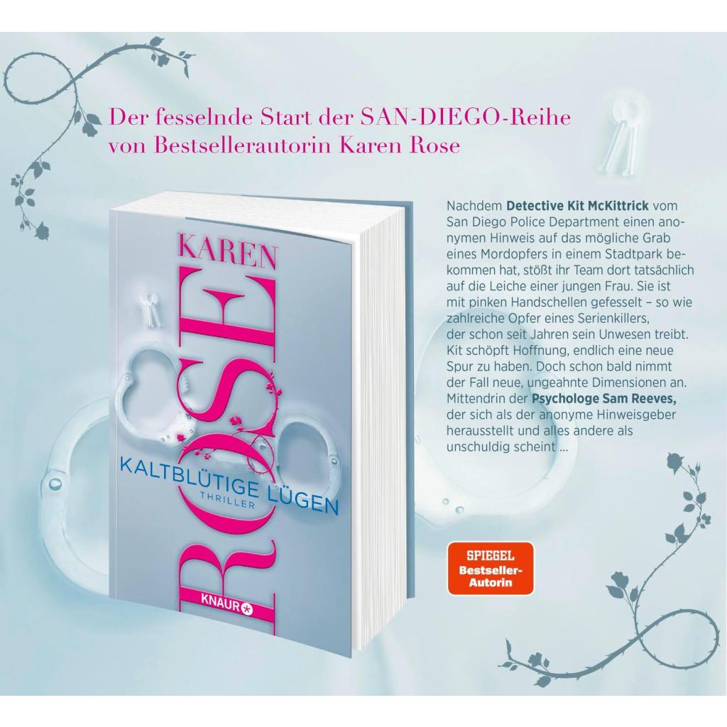 | Keyword: | Cheater; Detective; Detektivroman; Kaltblütige Lügen; Karen Rose Reihenfolge; Karen Rose deutsch; Kit McKittrick; Pageturner; Psychologe; Romantic Supense; Romantic Thrill; Sam Reeves; San Diego; San Diego Band 2; San Diego Reihe Karen Rose; San Diego Thriller Karen Rose; San-Diego-Reihe; San-Diego-Reihe Band 2; Serienmörder Thriller; Thriller; Thriller Autorinnen; Thriller Serien; Thriller Serienkiller; Thriller für Frauen; Thriller mit Liebesgeschichte; Thriller starke Frauen; amerikanische thriller autorinnen; amerikanische thriller bücher; beste thriller; karen rose san diego reihe; nervenkitzel; romantik thriller; romantische Thriller; serienkiller romane |