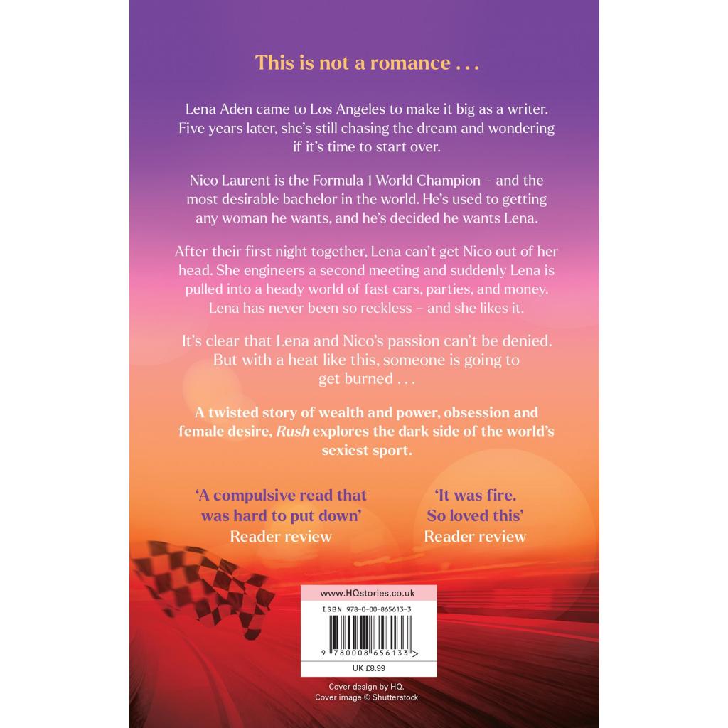 ¿ THIS IS NOT A ROMANCE: A twisted story of obsession and female desire, Rush explores the dark and toxic side of the world's sexiest sport ¿ 'Totally absorbed in the world of Lena and Nico' Reader Review ¿¿¿¿¿ 'I devoured this book over the course of two days ... an absolute page-turner' Reader review ¿¿¿¿¿ 'I love how this story celebrates relationships that buoy women emotionally without breaking their spirit' Reader review ¿¿¿¿¿ * * * * His desire will consume her. And all she can do is surrender. Lena Aden came to Los Angeles to make it big as a writer. Five years later, she's still chasing the dream and wondering if it's time to start over. Nico Laurent is the Formula 1 World Champion - and the most desirable bachelor in the world. He's used to getting any woman he wants, and he's decided he wants Lena. After their first night together, Lena can't get Nico out of her head. She engineers a second meeting and suddenly Lena is pulled into a heady world of fast cars, parties, and money. Lena has never been so reckless - and she likes it. It's clear that Lena and Nico's passion can't be denied. But with a heat like this, someone is going to get burned ... Don't miss this completely addictive story, perfect for fans of: F1 ¿¿ Spice ¿¿ ¿¿ ¿¿ ¿¿