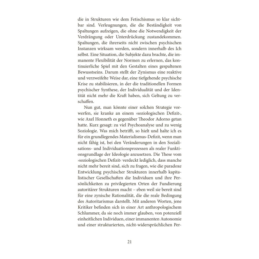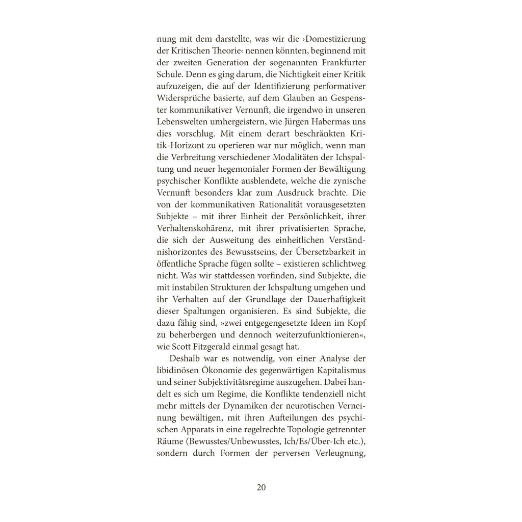 | Keyword: | Adorno; Autoritarismus; Demokratie; Entfremdungstheorie; Fetischismus; Frankfurter Schule; Hegel; Ideologiekritik; Kapitalismuskritik; Kritische Theorie; Lacan; Liberaler Kapitalismus; Masochismus; Neoliberalismus; Posthegelianismus; Psychoanalyse; Sozialpsychologie; Vernunftkritik; Zynismus; politische Herrschaft |