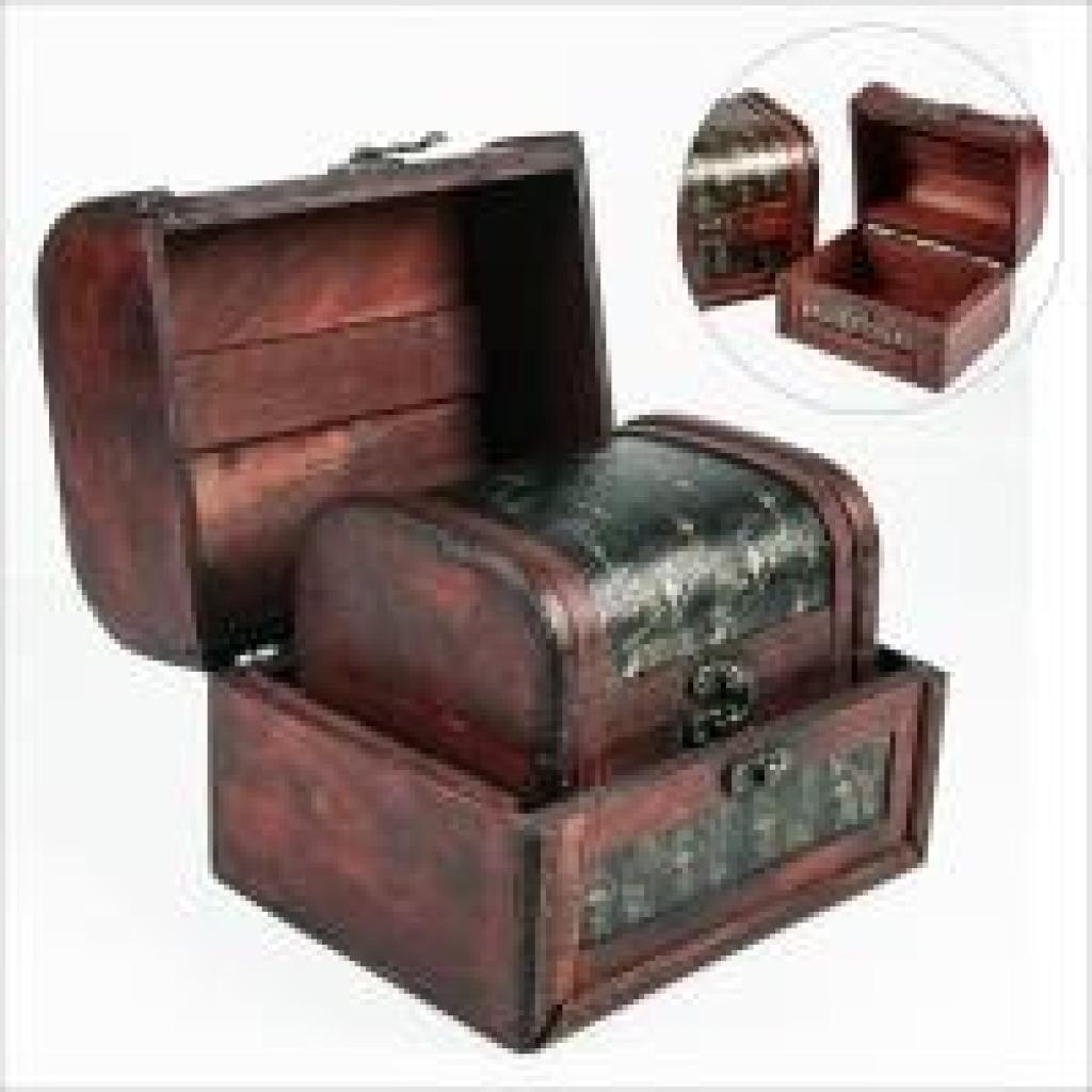 Handwerklich gefertigte Truhen mit sehr schön ausgeführten Details. Sehr dekorativ, eine schöne Geschenkidee. Größen: 18 x 14 x 13 cm und 14 x 12 x 10 cm