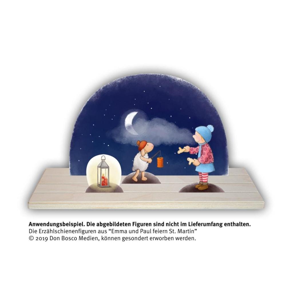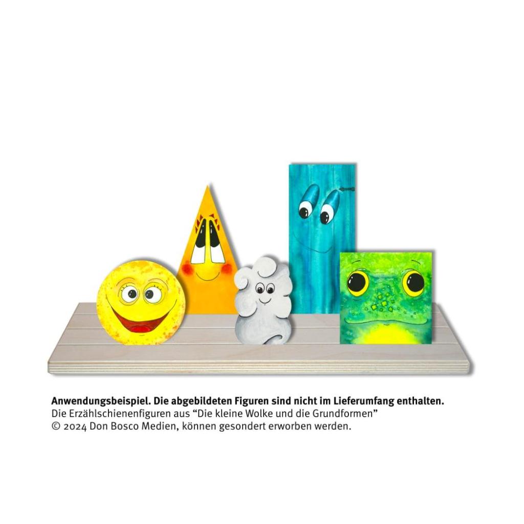 Mit der Erzählschiene stellt Don Bosco eine neue Methode der ganzheitlichen Sprach- und Erzählförderung vor: Die Kinder hören eine Geschichte. Anschließend gestalten sie aus Karton, Wolle, Perlen und Papierkügelchen die Figuren und Kulissen der Geschichte. Sie verteilen die Kulissen und Personen der Handlung auf den Führungsrillen der Erzählschiene, bewegen die Figuren gemäß der Handlung und begleiten dies sprachlich. Beim Greifen und Gestalten, beim Ordnen, Ablegen und Stellen entwickeln die Kinder ein inneres Bild von der Handlung. Sie entdecken die Beziehungen der einzelnen Akteure untereinander und erleben die Ebenen von Vordergrund und Hintergrund. Entlang der Szenen, die sie mit den Figuren und Kulissen gestellt haben, erzählen sie das Geschehen und mit ihrer Fantasie spinnen sie die Geschichte weiter. Auf diese Weise nehmen die Kinder das Erzählen selbst in die Hand und präsentieren ihre Geschichte - ganz großes Theater! - auf der kleinen Bühne der Erzählschiene. Das Erzählen mit der Erzählschiene beflügelt die Fantasie, schafft Zugang zu den eigenen Gefühlen, macht Lust auf kreatives Gestalten und fördert den Spracherwerb sowie das freie Erzählen und Präsentieren. Die Erzählschiene wird aus sozialer Verantwortung vom Dominikus-Ringeisen-Werk in Ursberg (Bayern) hergestellt. Die sorgfältig verarbeitete Multiplexplatte aus Birke ist 40 cm lang und 15 cm tief. Sie verfügt über drei eingefräste Führungsrillen, die die Figuren- und Kulissenteile aufnehmen. Bei der Lieferung inklusive: ein 24-seitiges methodisches Begleitheft und die Starter-Geschichte "Lori auf See" mit allen Figuren und Kulissen zum Ausschneiden und Gestalten. Die Erzählschiene wurde auf die Breite des Don Bosco-Erzähltheaters Kamishibai abgestimmt. Damit können Kamishibai-Geschichten um bewegliche Elemente ergänzt werden!