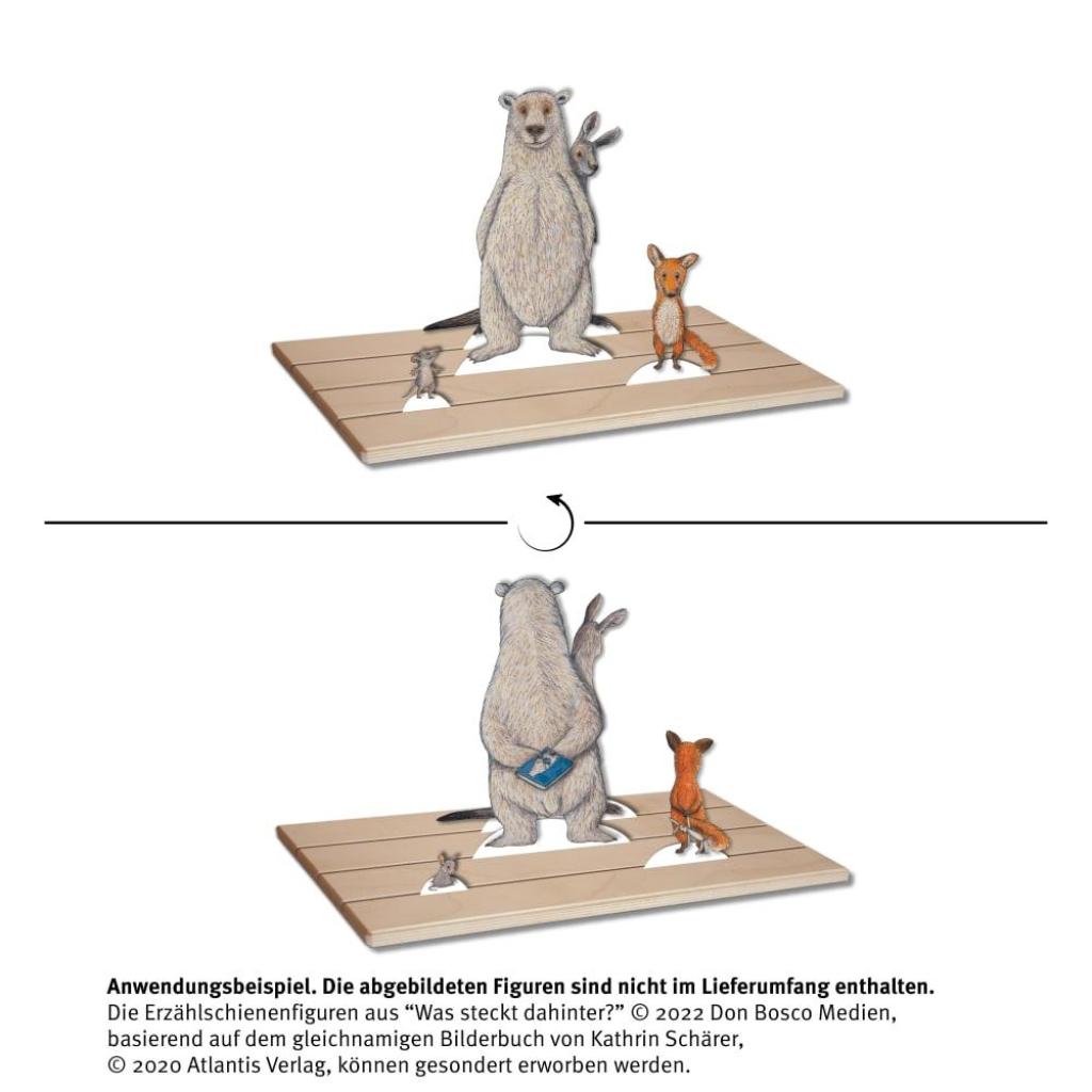 | Beilage: | Birke-Multiplexplatte, 40 cm x 15 cm, klar lackiert, 3 gefräste Führungsrillen, mit methodischer Anleitung, Startergeschichte, Figuren zum Ausschneiden, Downloadcode für Bonusmaterial |