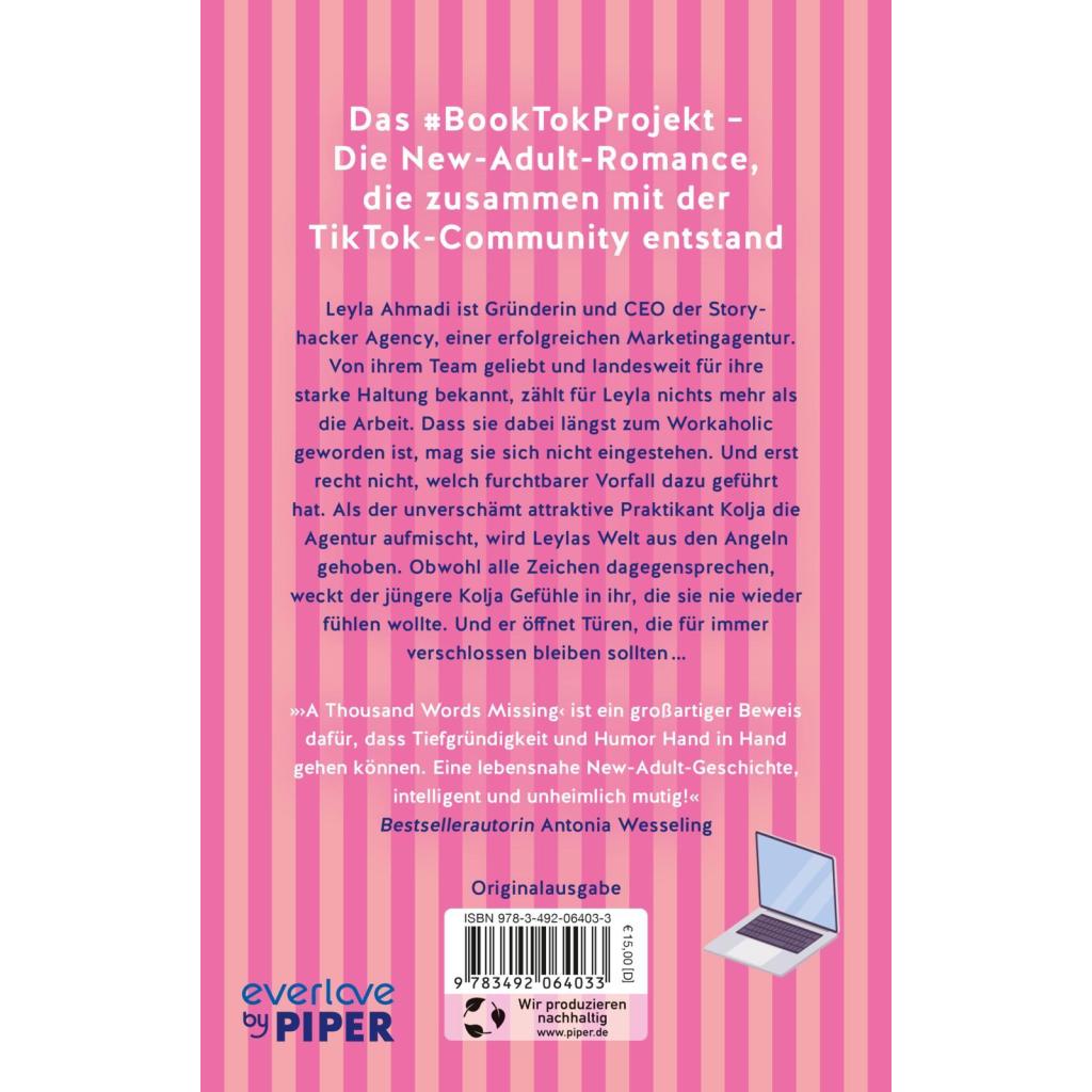 | Keyword: | Age Gap; Ava Reed; Bookstagram; Buch mit Abstimmung; Carolin Wahl; Chefin; Community-Projekt; Forbidden Love; Girl Boss; Kathinka Engel; Kyra Groh; Lena Kiefer; Liebesroman; Mental Health; New Adult deutsch; Office Romance; Praktikant; TikTok; booktok; romantisch |