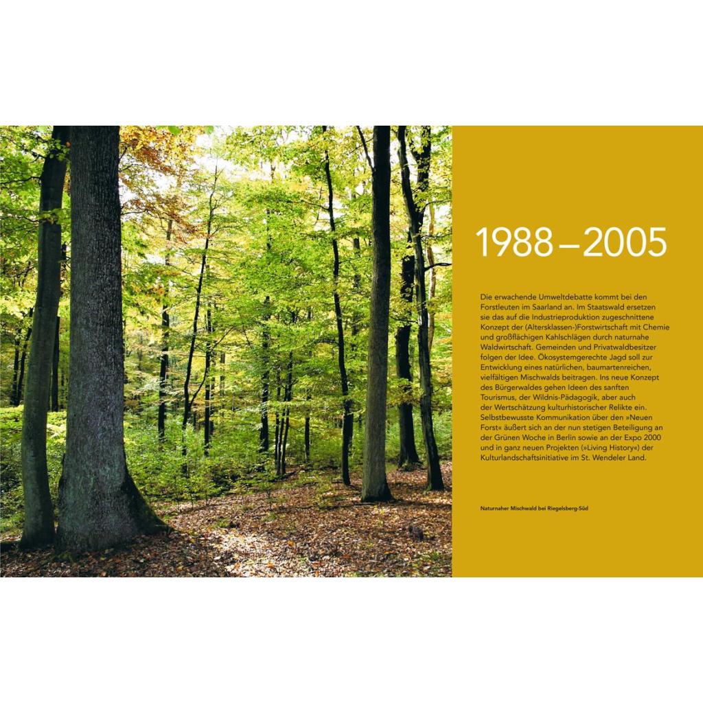 Unsere saarländischen Wälder haben eine wechselvolle Geschichte; sie sind wie ein Lesebuch, das wir entziffern können. Geprägt durch Industrie, Kriege und unterschiedliche Nutzungsarten sind die Handschriften der einzelnen Jahrzehnte heute immer noch erkennbar. Kräftige Eichen erzählen Geschichten aus der Zeit des Bergbaus. Fichten und Douglasien mussten bei der Wiederaufforstung herhalten, um nach den großen Kahlhieben nach dem 2. Weltkrieg, den Reparationshieben, möglichst schnell Flächen wiederzubewalden. Ebenso wie sich das Verständnis für die Funktion unserer Wälder über die Jahre geändert hat, hat sich auch die Art der Bewirtschaftung verändert. Heute wird der Staatswald unter Beachtung von Natur- und Artenschutz bewirtschaftet: Die Ökologie bildet den Rahmen. Die beiden Autoren betrachten den Weg dorthin unter dem Aspekt der Forstpraxis und der gesellschaftlichen Entwicklungen. Eindrucksvolle Fotos und Grafiken illustrieren diese Reise durch die saarländische Forstgeschichte.