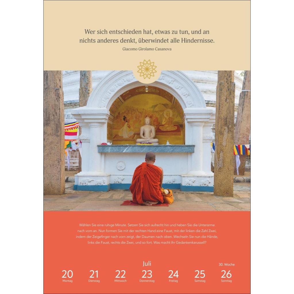 Foto-Wandkalender mit buddhistischen Motiven und inspirierenden Zitaten. Bildkalender 2026 für Achtsamkeit im Alltag. 25 x 35,5 cm