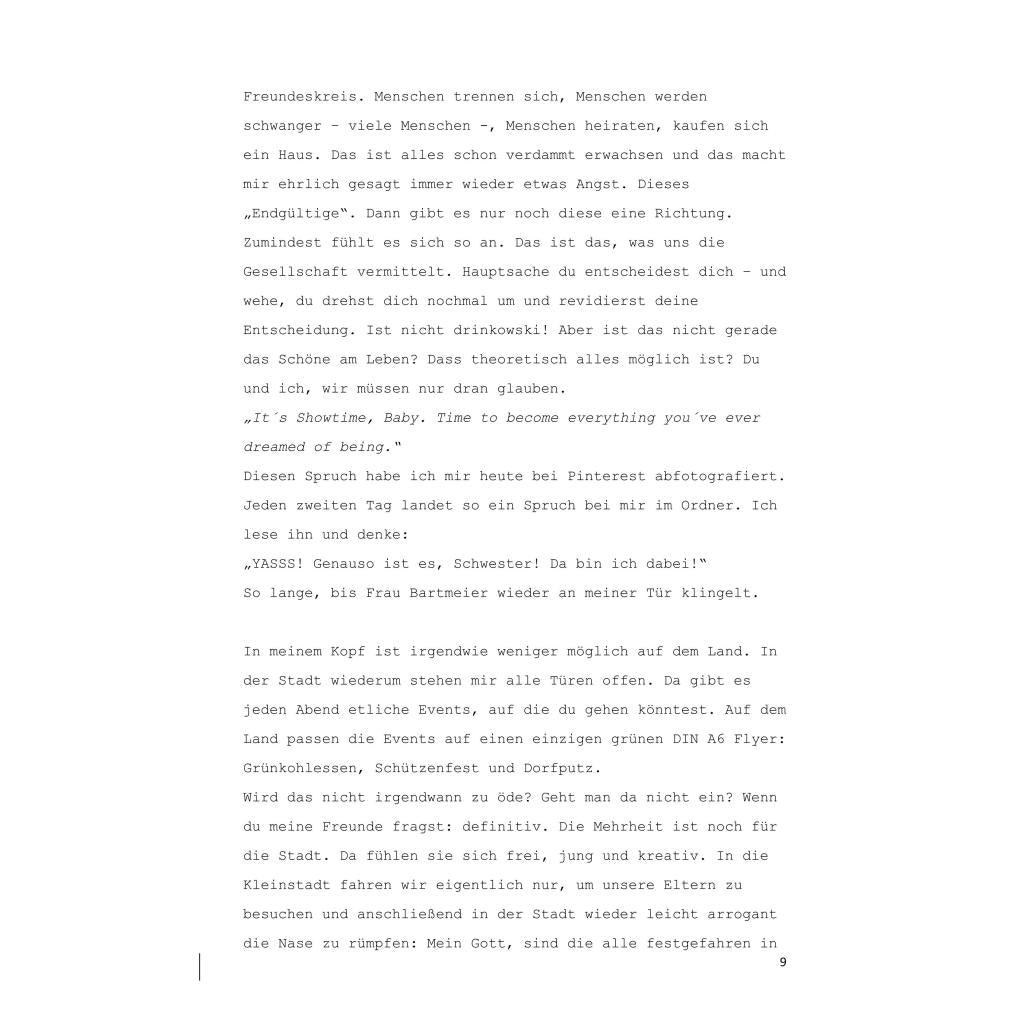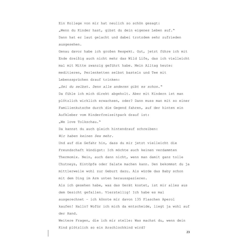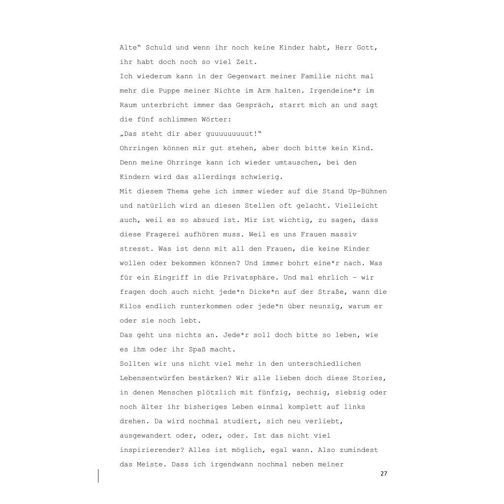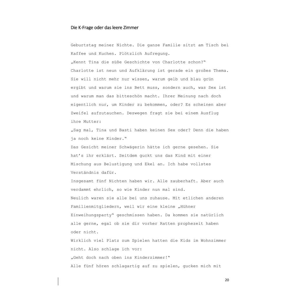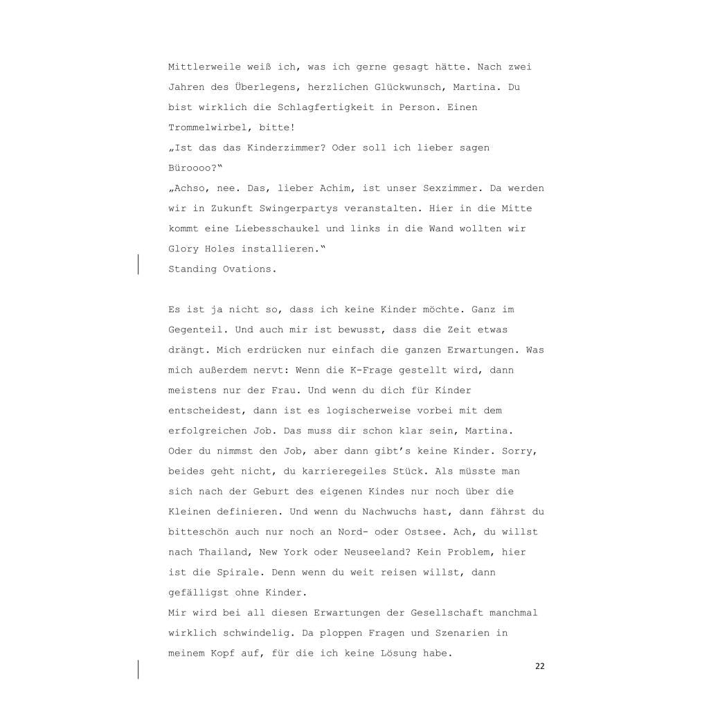 Das Tolle an Ratschlägen ist: sie kommen ungefragt. Wer denkt, er habe sein Leben einigermaßen im Griff, frage mal die andern. Die hätten sicher noch ein paar Tipps. Wie befreiend und aufregend müsste es sein, schlagfertig zu reagieren, spontan die passende Antwort parat zu haben? Martina will das können und startet ein Schlagfertigkeits-Bootcamp. Auf komödiantische und ultimativ entlastende Art zeigt sie, wie man erkennt, was einem wirklich wichtig ist und wie man für sich einsteht. Vor allem zeigt sie, wie die schlagfertigen Gedanken endlich ihren Weg über die Lippen finden. Sie krönt sich zur Königin der Schlagfertigkeit und verpasst allen Ratschlägern einen Maulkorb. Was Martina gelingt, gelingt auch dir und macht sogar Spaß!