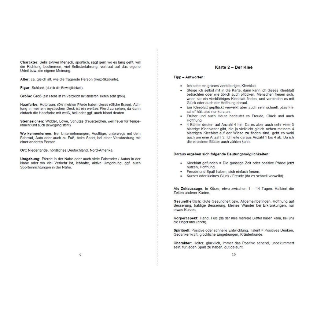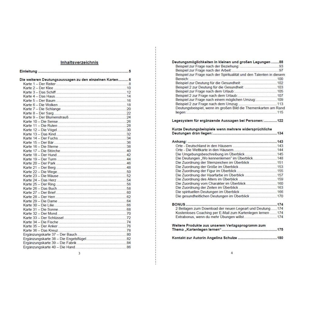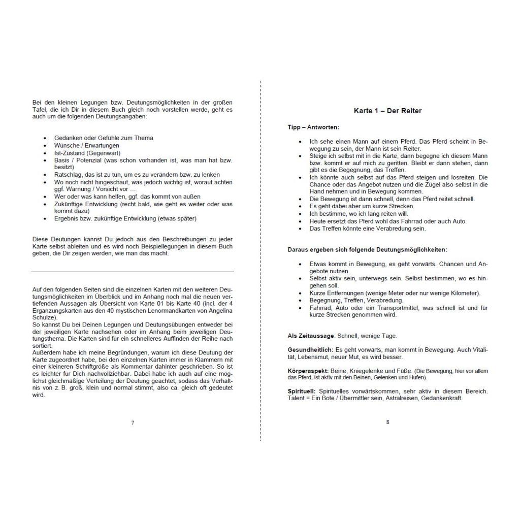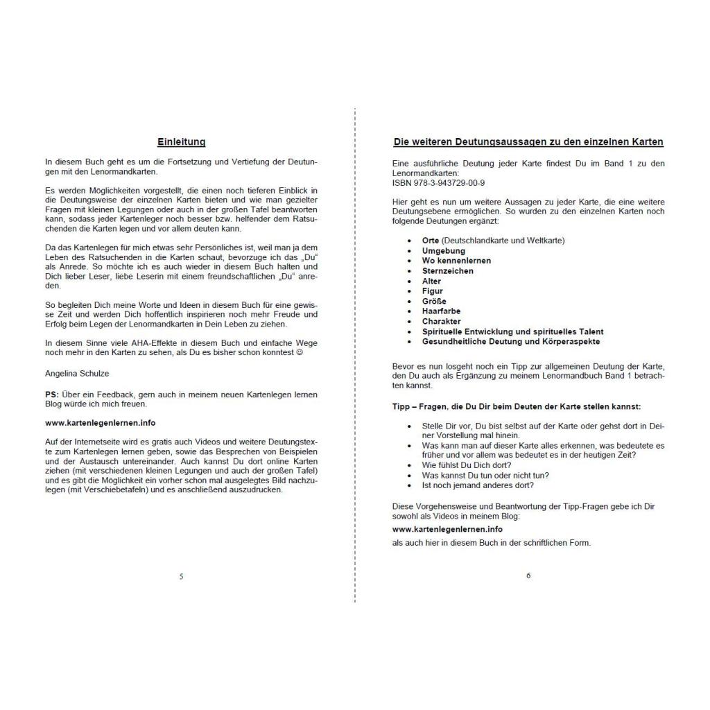 In diesem Band 5 geht es um die Fortsetzung und Vertiefung der Deutungen mit den Lenormandkarten. Dabei ist es egal, welches Lenormandkartendeck verwendet wird. Die Deutungen eignen sich für alle Decks zu den Lenormandkarten. Es werden Möglichkeiten vorgestellt, die einen noch tieferen Einblick in die Deutungsweise der einzelnen Karten bieten und wie man gezielter Fragen mit kleinen Legungen oder auch in der großen Tafel beantworten kann, sodass jeder Kartenleger noch besser bzw. helfender dem Ratsuchenden die Karten legen und vor allem deuten kann. Es geht also um weitere Aussagen zu jeder Karte, die eine weitere Deutungsebene ermöglichen. So wurden zu den einzelnen Karten noch folgende Deutungen ergänzt: - Orte (Deutschlandkarte und Weltkarte) - Umgebung - Wo kennenlernen - Sternzeichen - Alter - Figur - Größe - Haarfarbe - Charakter - Spirituelle Entwicklung und spirituelles Talent - Gesundheitliche Deutung und Körperaspekte DIN A5 Buch mit 180 Seiten. Zusätzlich gibt es 2 Digital zum Download mit den wichtigstens vertiefenden Deutungsaussagen zu jeder Karte im schnellen Überblick und als Hilfe beim Kartenlegen, sowie den Legungen und Deutungen im Kartenbild nach der vertiefenden Deutungsmethode.
