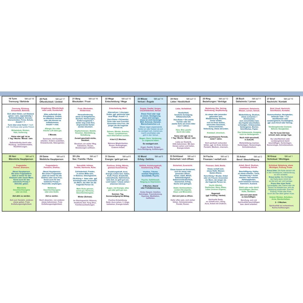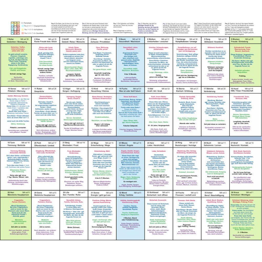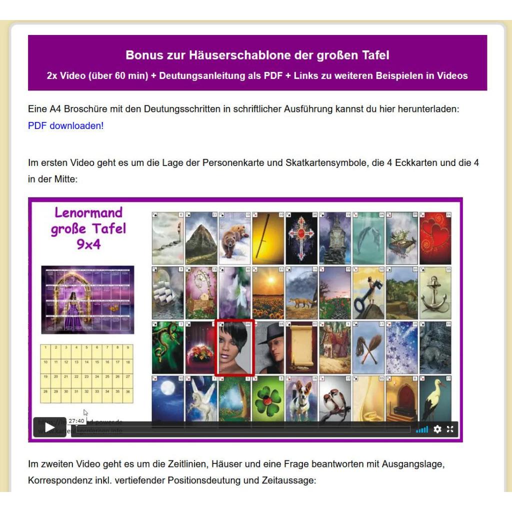Deutungshilfe der 36 Lenormandkarten und Unterlage zur Häuserdeutung inkl. "Online Erklärvideos"