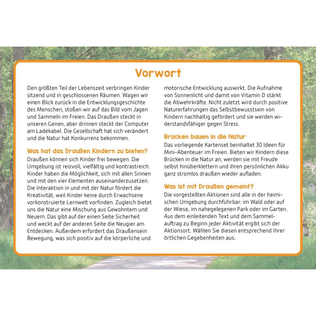 | Beilage: | DIN A5, 32 Karten, 30 Aktionen, beidseitig bedruckt, fester 350g-Karton, farbig illustriert, inkl. method. Hinweise, Pappbox, plastikfrei verpackt m. OVP-Siegel, inkl. Downloadcode f. Zusatzmaterial |