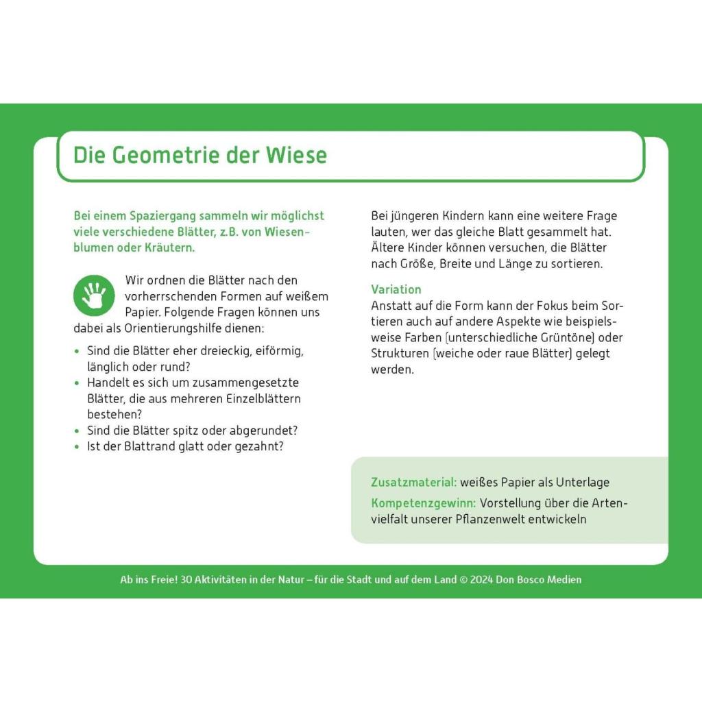 30 Aktivitäten in der Natur. Für die Stadt und auf dem Land. Tiere & Pflanzen auf der Wiese, im Park oder Garten kennenlernen: Bildkarten für Naturprojekte mit Kindern von 3-8