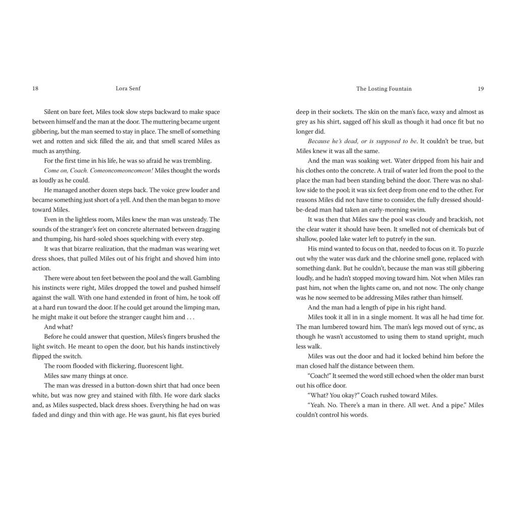 Ember, Miles, and Sam have been called home—only home is a place none of them have ever been before. The choices they make will not only determine their own futures but will also have vast and permanent consequences—they will either restore a cosmic balance or destroy the dams that separate two worlds, ending them both. Ember was called because she belonged, Miles because his mother belonged, and Sam . . . well, Sam arranged his own invitation. The Fountain itself is beautiful and alluring—yet so is the light of an anglerfish. Hidden below the surface, the world of the Fountain is vast: unexplored and unmapped and full of wild things—leviathan and tiny, scuttling things and all manner of creature in between. There are other entities as well, entities that haunt and hunt in the Fountain, because it rewards nearly as often as it punishes, and it has been punishing the greedy and merciless and cruel for a very long time. For those, the Fountain becomes a prison. The borders between our world and the world of the Fountain are already porous. If the balance between them is upset and control of the Fountain is lost, the consequences will be rapid, merciless, and world-ending. In every timeline that has been or will be, everywhere that water stands in our world will become a passageway for the violent damned to enter ours from the Fountain. For Ember, Miles, and Sam, all from different times, what starts as a journey to take control of their lives quickly becomes a quest to save—or destroy—both worlds, depending on whom you ask. Rising star and Bram Stoker Award-winning author , Lora Senf has created a gorgeously written, pitch-black fantasy that will transport readers to a world that is as beautiful as it is horrifying and will keep readers on their toes as they devour it page by page.
