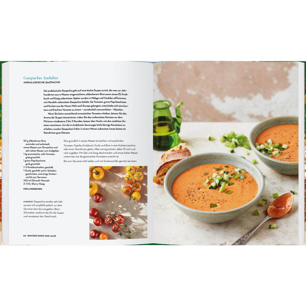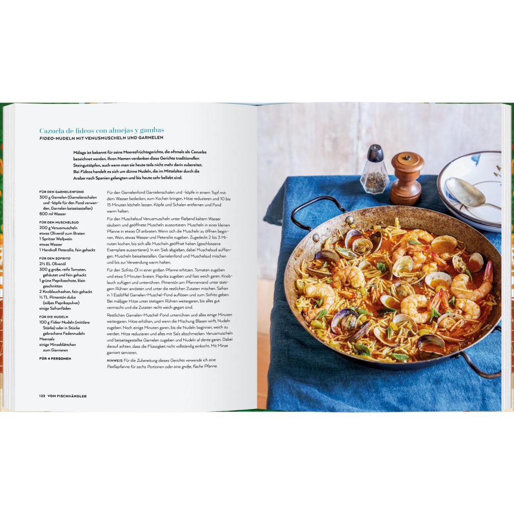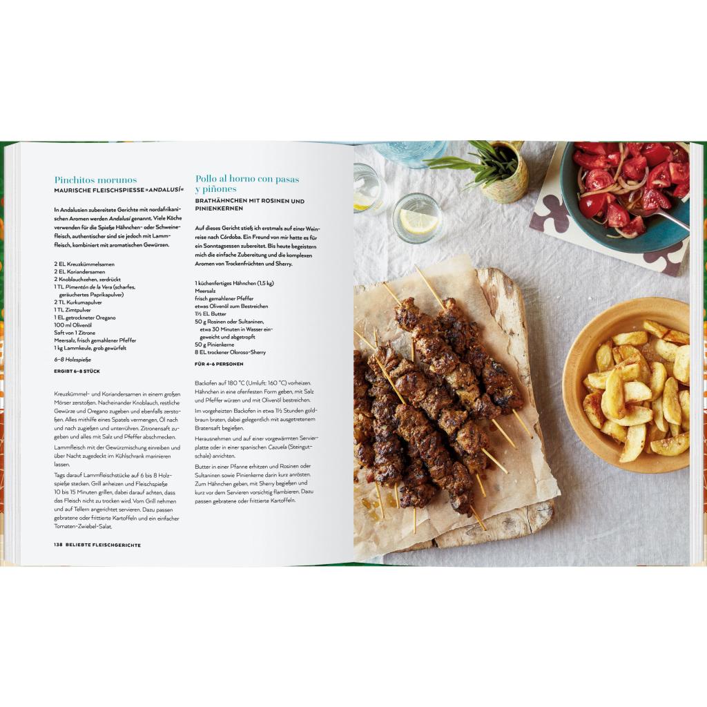 Die acht Provinzen Andalusiens locken mit enorm abwechslungsreicher Landschaft und vielfältigem kulturellem Erbe. Vom dem hoch aufragenden Bergmassiv Sierra Nevada über traumhafte Strände an Mittelmeer und Atlantik bis zur beeindruckenden maurischen Architektur in Sevilla und Granada. Die Gastfreundschaft der Andalusier ist legendär und schlägt sich unter anderem in den unzähligen Tapas-Bars nieder, dort werden leckere Appetithäppchen mit Gemüse, Fisch, Meeresfrüchten und Fleisch serviert. Nach dem Aperitif kann man in den zahlreichen Restaurants Paella, frischen Fisch oder Fleischgerichte genießen, aromatisiert mit Kräutern und orientalischen Gewürzen. Entdecken Sie die Geheimnisse der andalusischen Küche anhand von 80 authentischen Rezepten, die mit Liebe und Sorgfalt konzipiert sind.