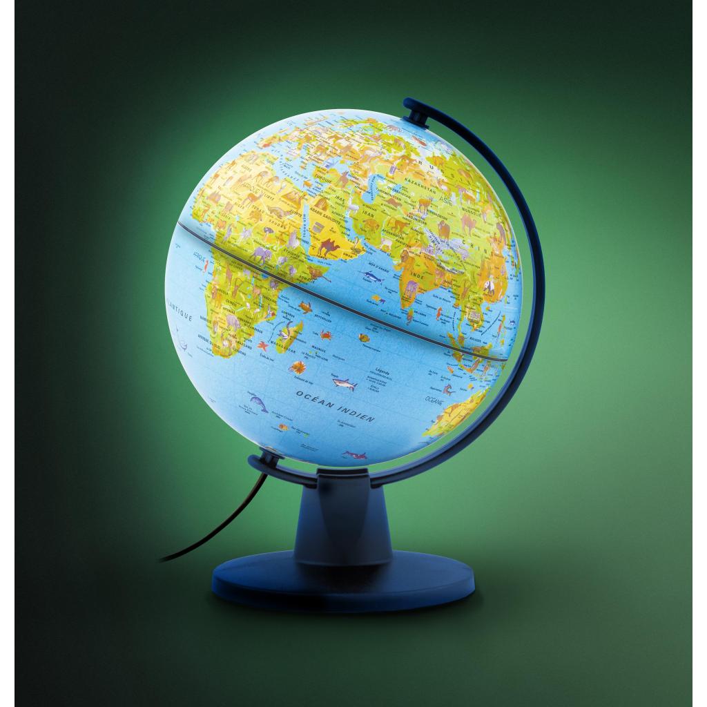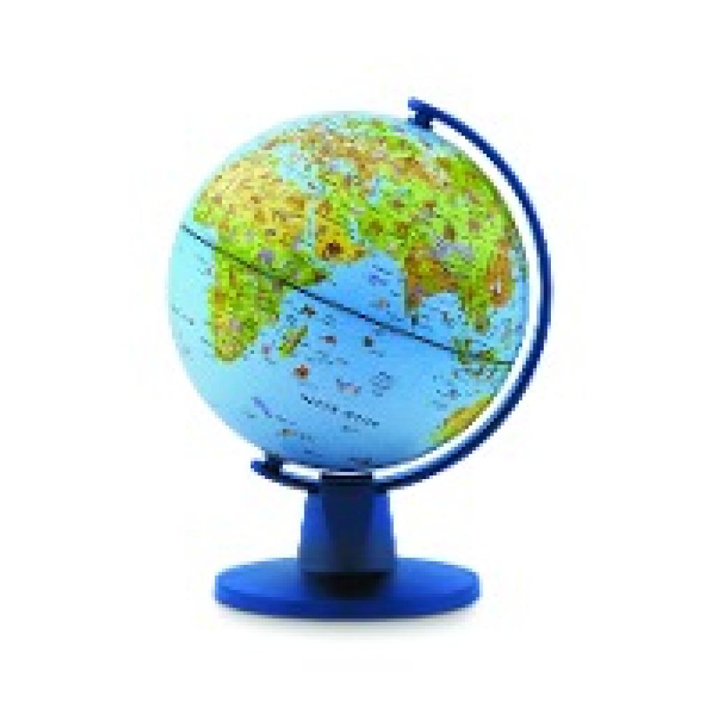 SFL 16, Kinder-Miniglobus mit kindgerechter Kartografie mit vielen Tierabbildungen. LED-beleuchtet mit 5-Volt USB. Blaues Kunststoffgestell, schwarzes USB-Kabel ca 1,4 m mit Schnurschalter. Globus wird zerlegt geliefert und muss beim Kunden endmontiert werden. Nicht im Lieferumfang: Netzstecker mit USB-Anschluss