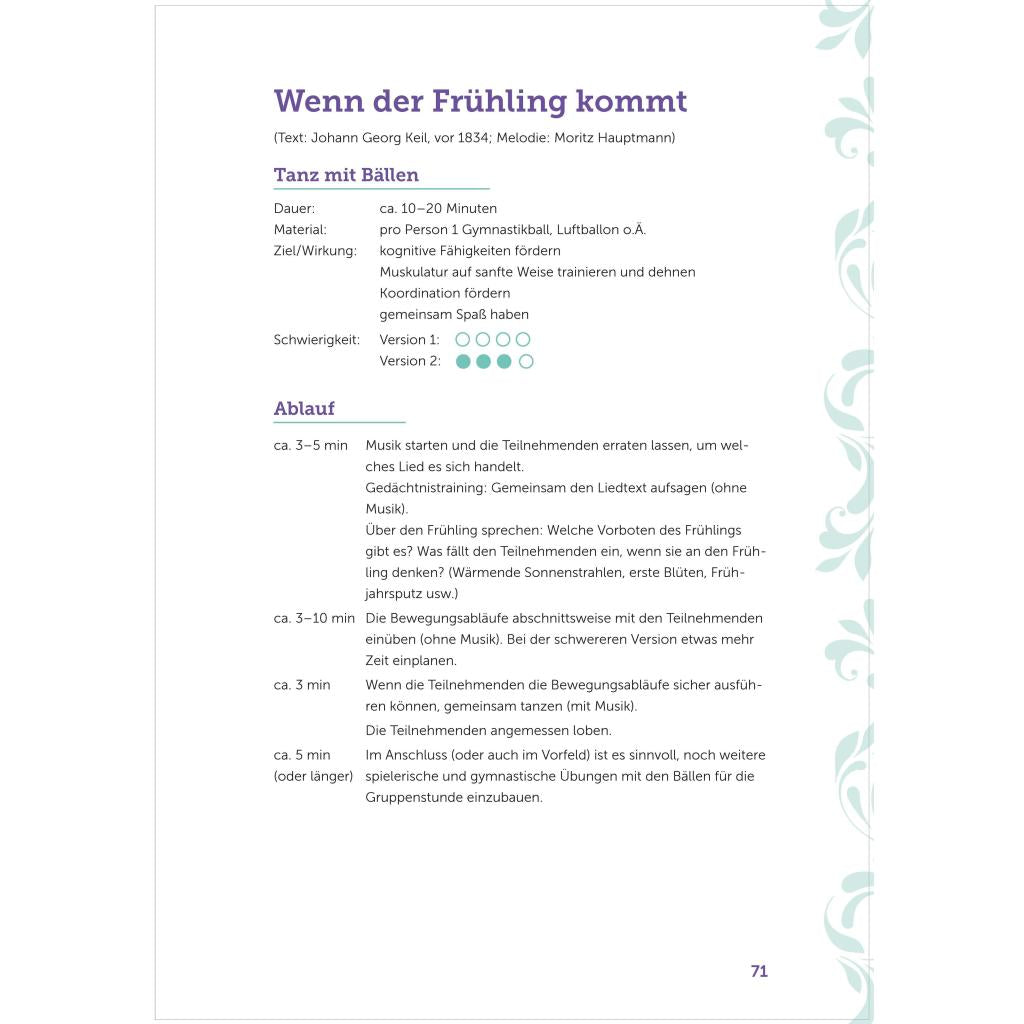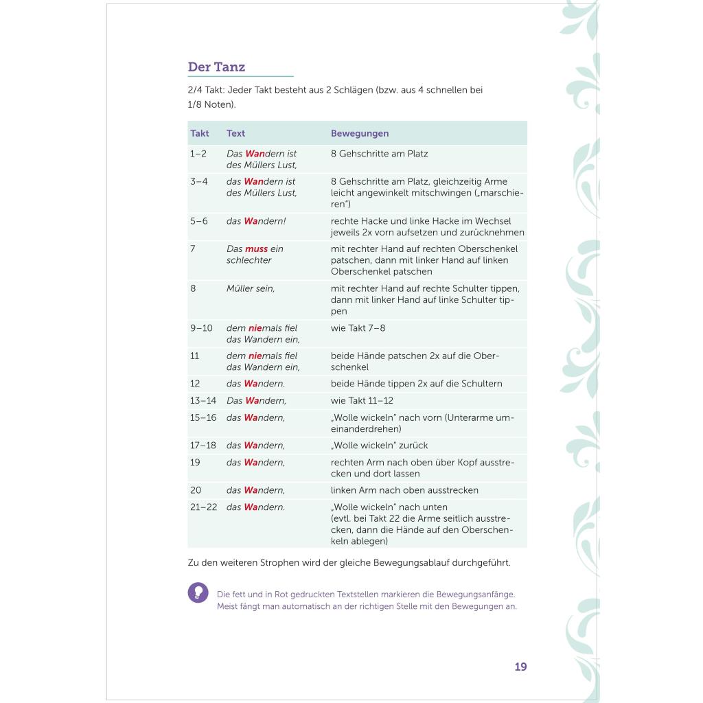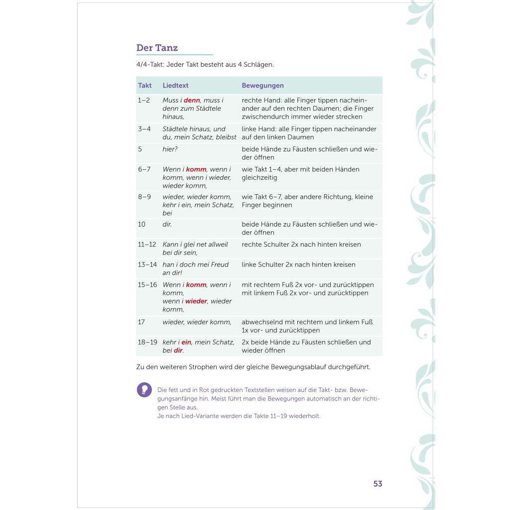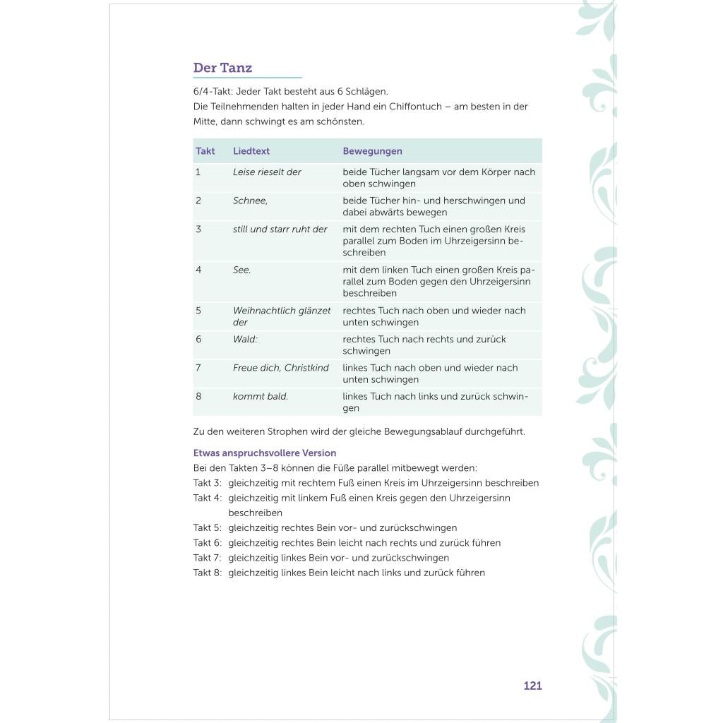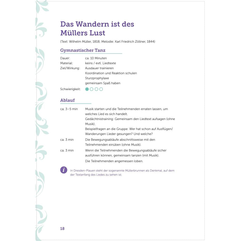 Die schönsten Sitztänze für Senioren Über 30 Tänze und Bewegungslieder zu bekannten und beliebten Volksliedern, die Schwung in Ihre Seniorenrunde bringen! Mit Musik geht vieles leichter - besonders auch Übungen für eine bessere Alltagsfitness. Denn Musik regt Körper und Geist an, und so bewegt sich alles fast wie von selbst. Deshalb bereitet Tanzen im Sitzen älteren Menschen auch mehr Spaß als trockene Gymnastikübungen. Und selbst mit eingeschränkter Beweglichkeit oder Demenz kann getanzt werden. So stärken Sitztänze Muskeln und Gelenke und trainieren gleichzeitig das Gedächtnis. Alle Tänze in diesem Buch umfassen übersichtliche Bewegungsanleitungen, Liedtexte und Noten, sodass Seniorinnen und Senioren, ob einzeln oder in der Gruppe, einfach und unbeschwert angeleitet werden können. Sie eignen sich sowohl für Anfänger als auch für Fortgeschrittene . Bei einigen Tänzen sorgt der Einsatz von Materialien wie Tücher oder Holzstäbe für die besondere Abwechslung. Ein reicher Fundus für alle, die mit Seniorinnen und Senioren arbeiten!