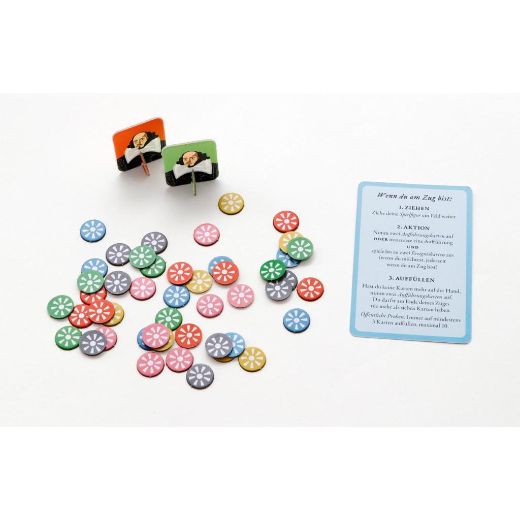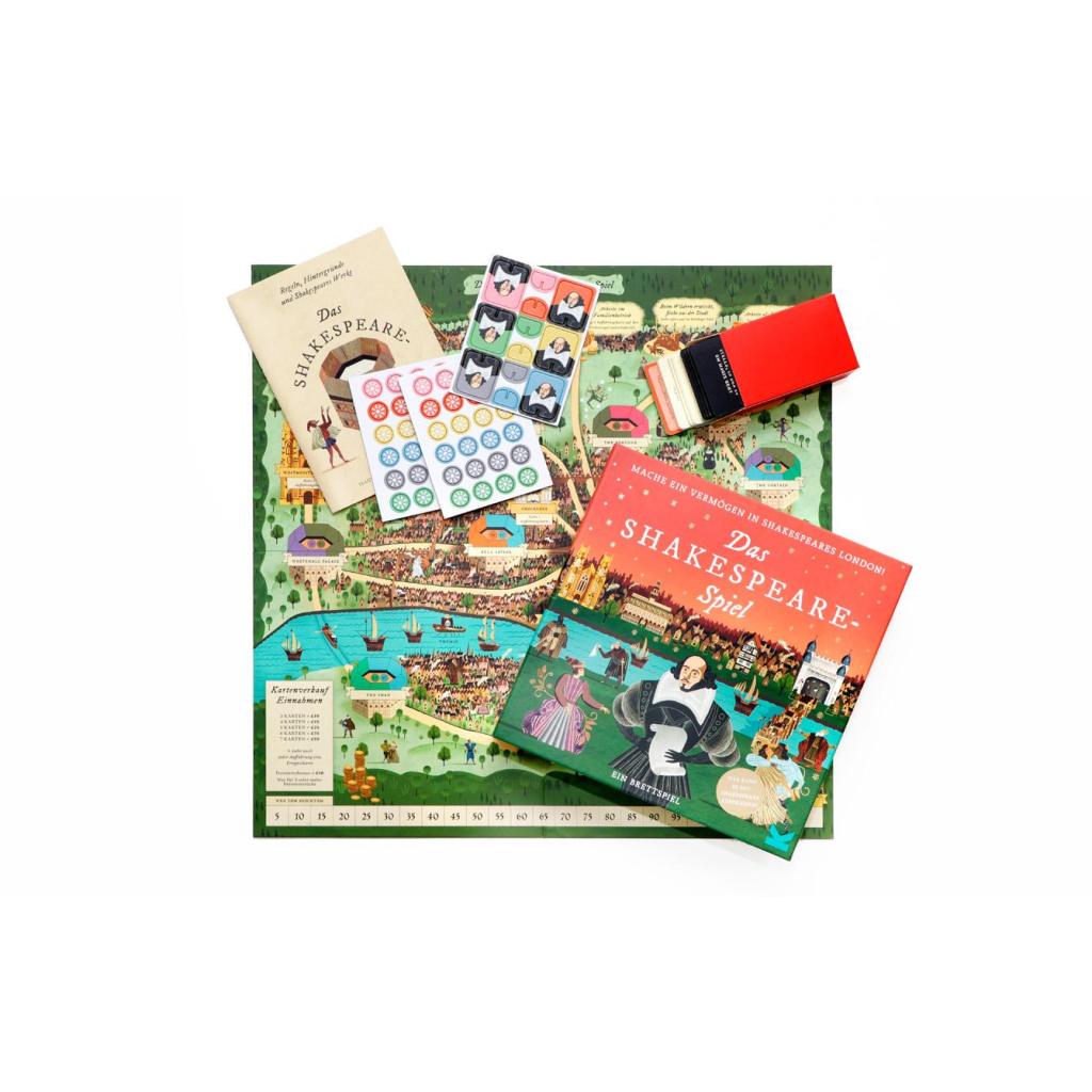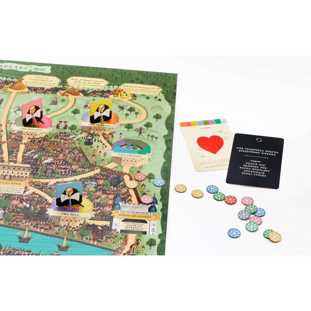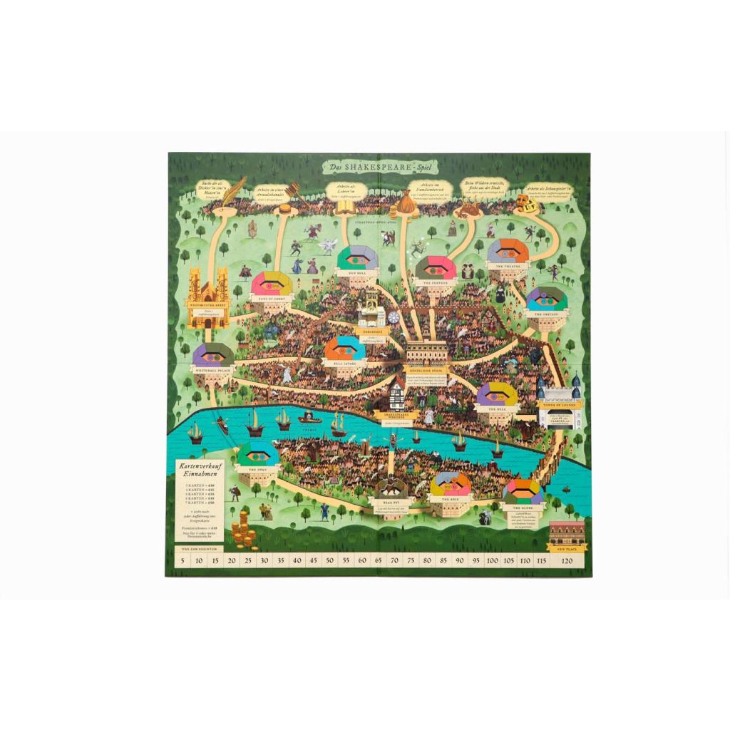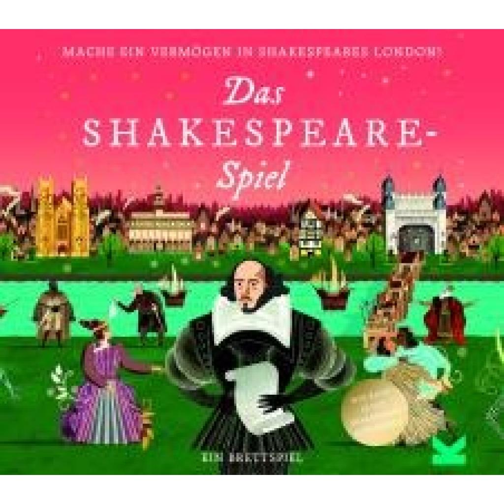 Reisen Sie auf den Spuren des beliebtesten Dramatikers der Welt von Stratford nach London, sammeln Sie Figuren und rasen Sie durch die Londoner Theater, um so viele Stücke wie möglich aufzuführen, bevor andere Dramatiker Ihre Ideen stehlen, Ihre Theater niederbrennen oder die Pest verbreiten! In diesem unterhaltsamen Brettspiel für die ganze Familie lernen Sie Details über das elisabethanische England und jede Menge Bezüge zu Shakespeares Stücken kennen. Der Gewinner ist der Spieler, dessen Aufführungen das meiste Geld an der Theaterkasse einspielen und der am schnellsten zu Ruhm und Ehre gelangt. - Für 2 - 6 Spieler ab 8 Jahren