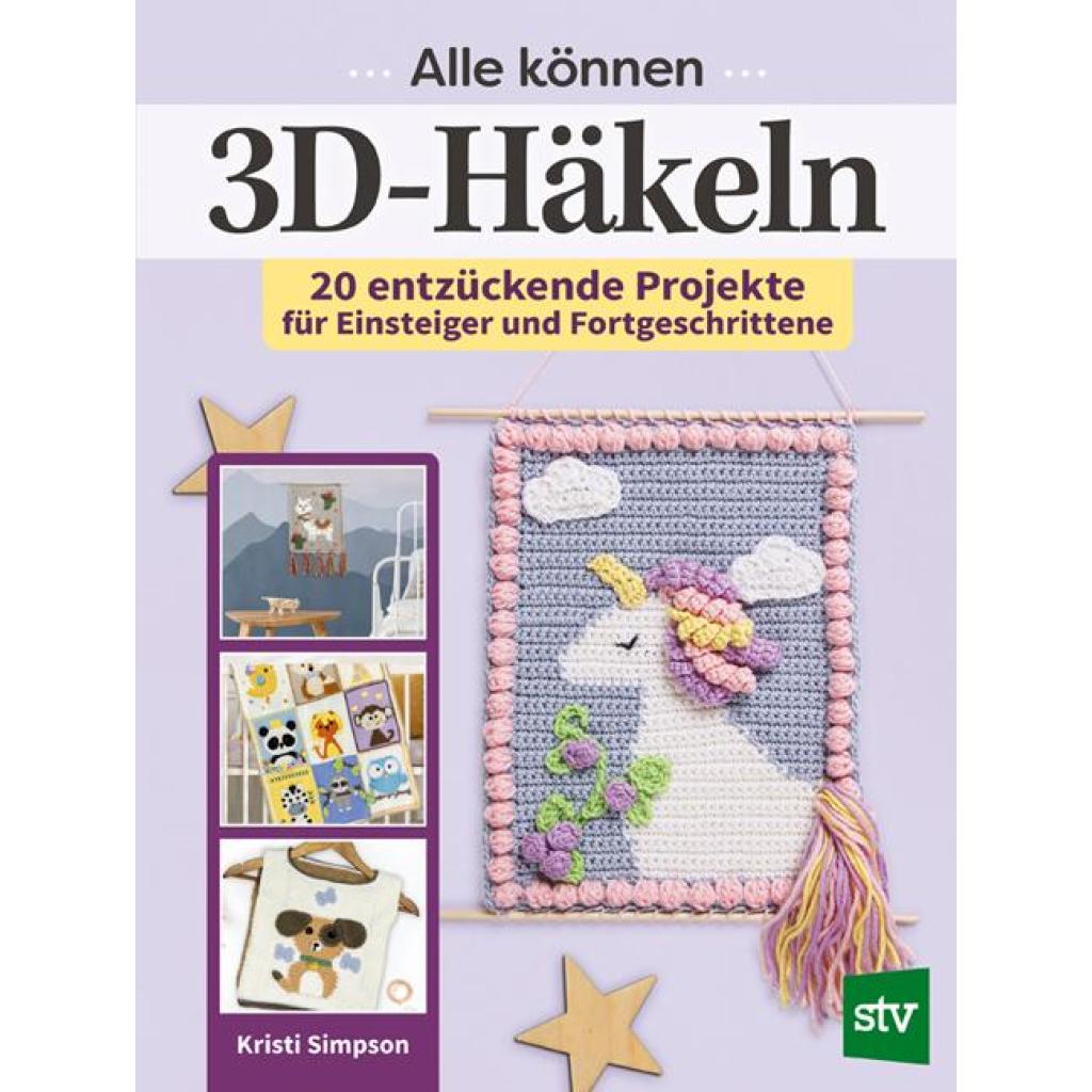 20 zauberhafte Tierdesigns laden zum 3D-Häkeln ein! Das Besondere daran: Die Tiere werden flächig gehäkelt und erhalten dann mit aufgenähten oder aufgehäkelten Applikationen den speziellen 3D-Effekt, um ihnen eine plastische Form zu geben. So werden die Ohren eines Hündchens extra gehäkelt und im Anschluss angenäht, ebenso wie Beinchen und Flossen des Pinguins. Das Stinktier wiederum erhält mit Pompoms einen kuscheligen Schwanz und der Igel mit eingeknüpften Fäden eine sprichwörtliche Igelfrisur. Die 20 Designs sind grundsätzlich als Wandbehänge im Buch vorgestellt. Anhand von 8 ausgearbeiteten Projekten wird auch gezeigt, wie die Designs zu anderen Werkstücken kombiniert bzw. umgearbeitet werden können. So entstehen Decken, Kopfkissen, Sensorikwürfel für die Kleinsten, Schlafsack, Einkaufstaschen, ein entzückender Poncho oder ein süßer Pullunder. Eine ausführliche Einleitung erklärt die Verwendung des Buches und geht auf das empfohlene Material sowie auf die verwendeten Techniken ein.