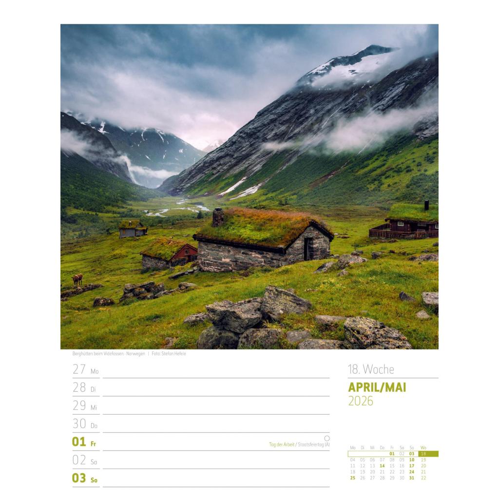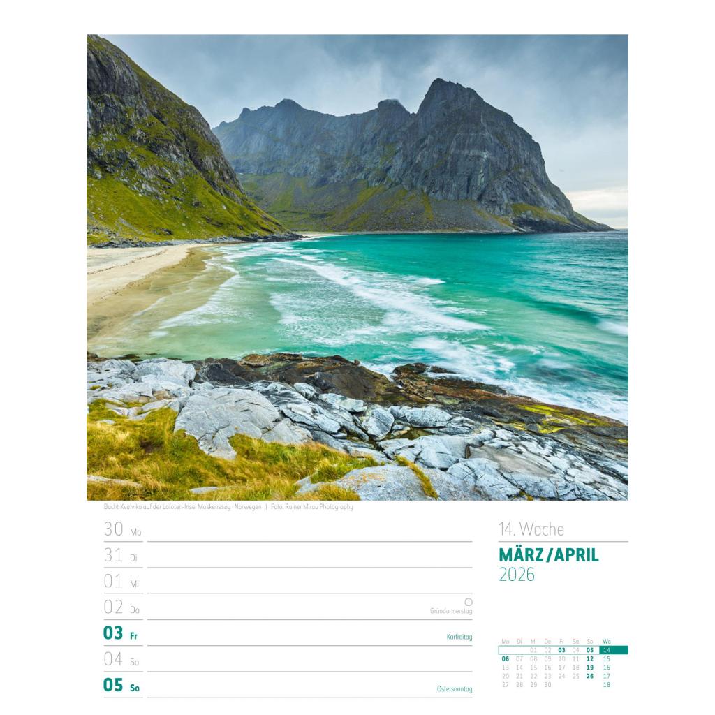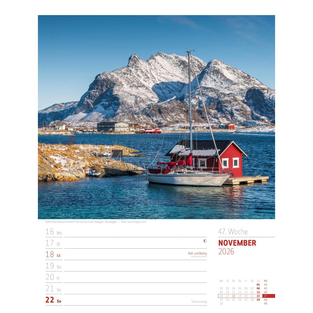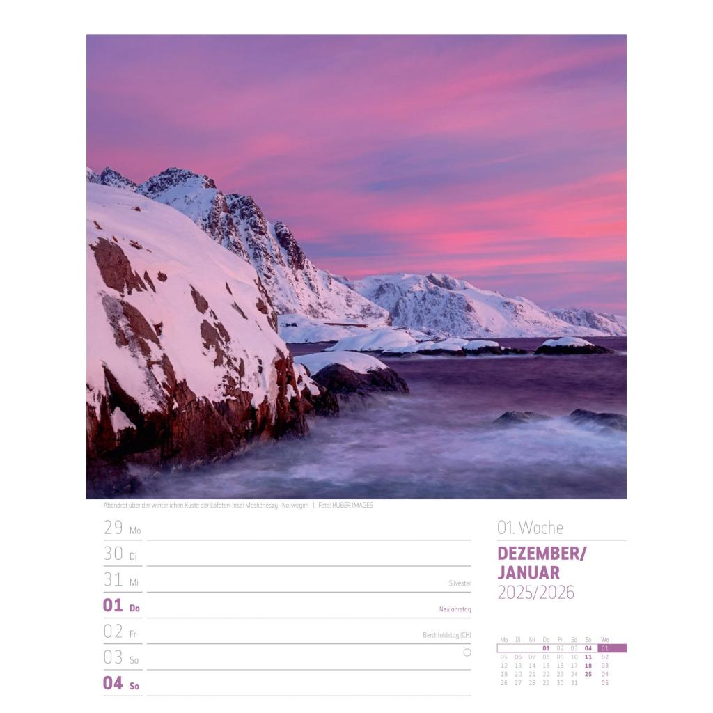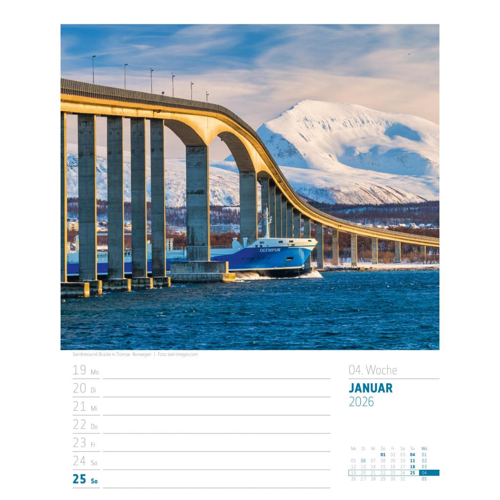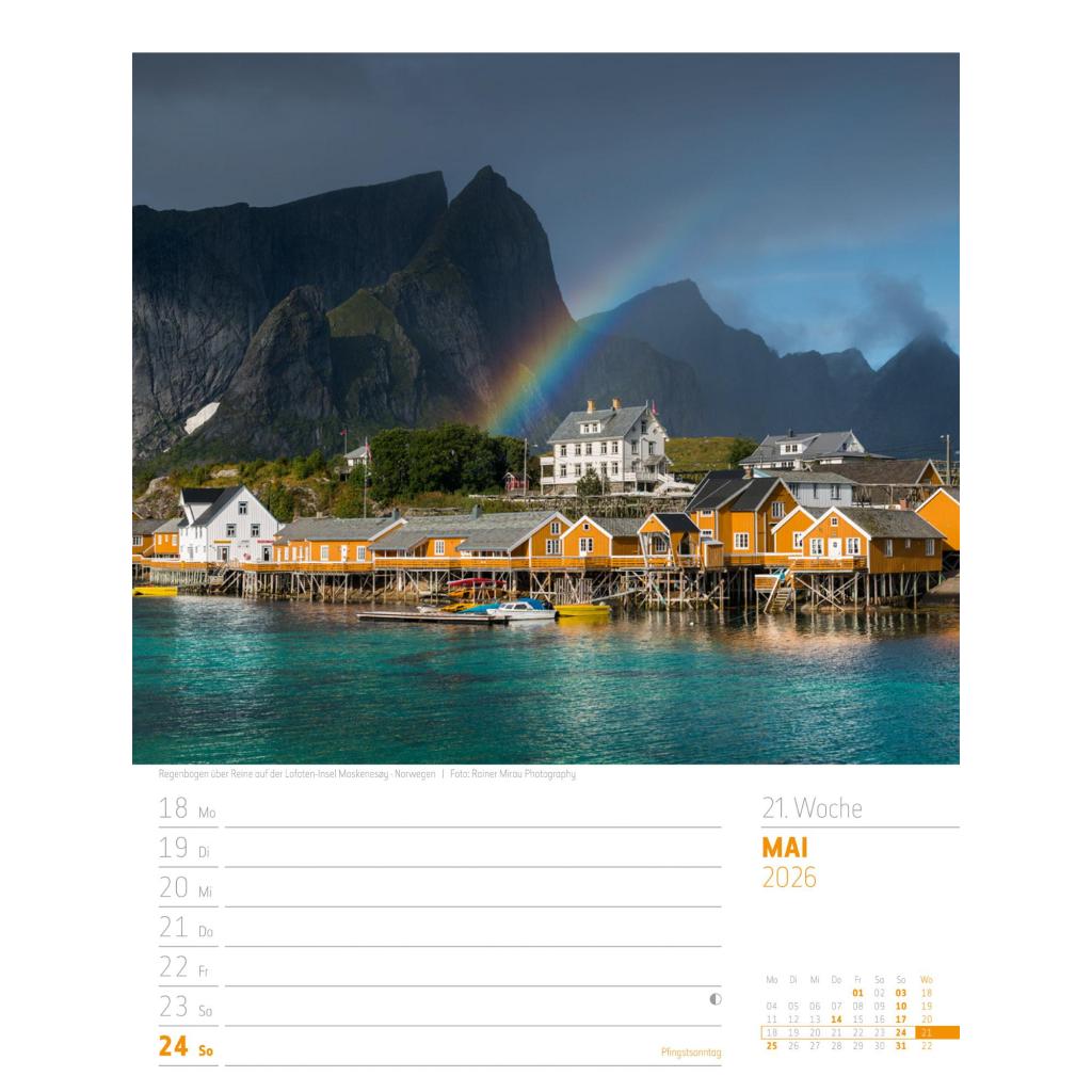 Vielfältiger Reise-Wochenkalender im Hochformat (25x33 cm) | Norwegen & Co.