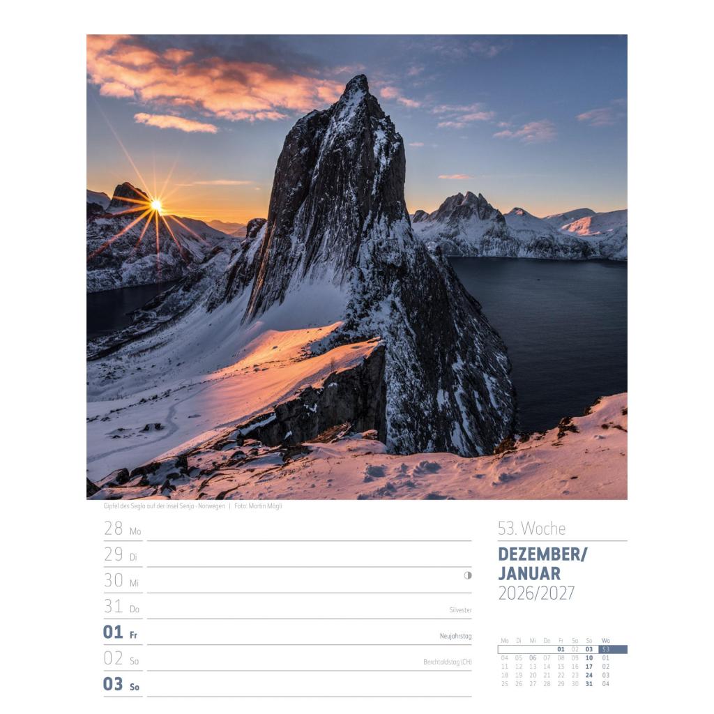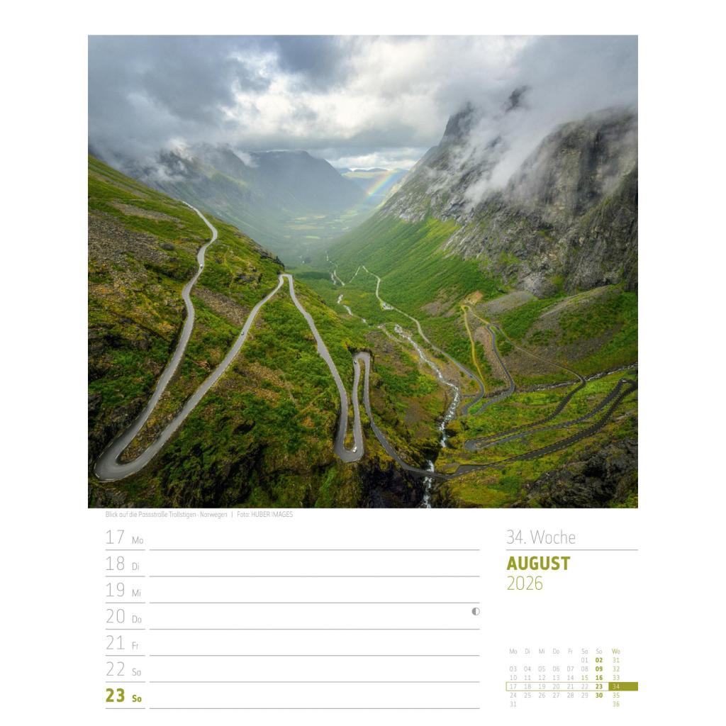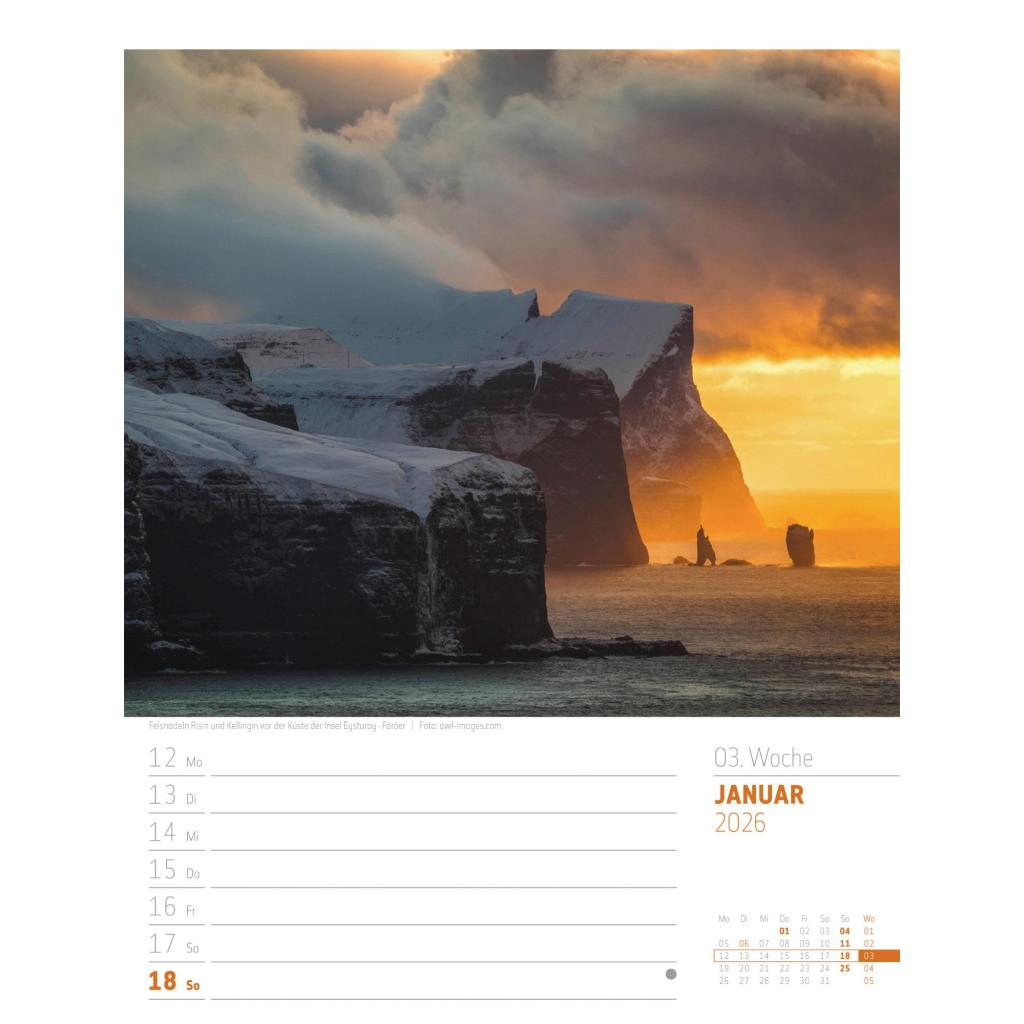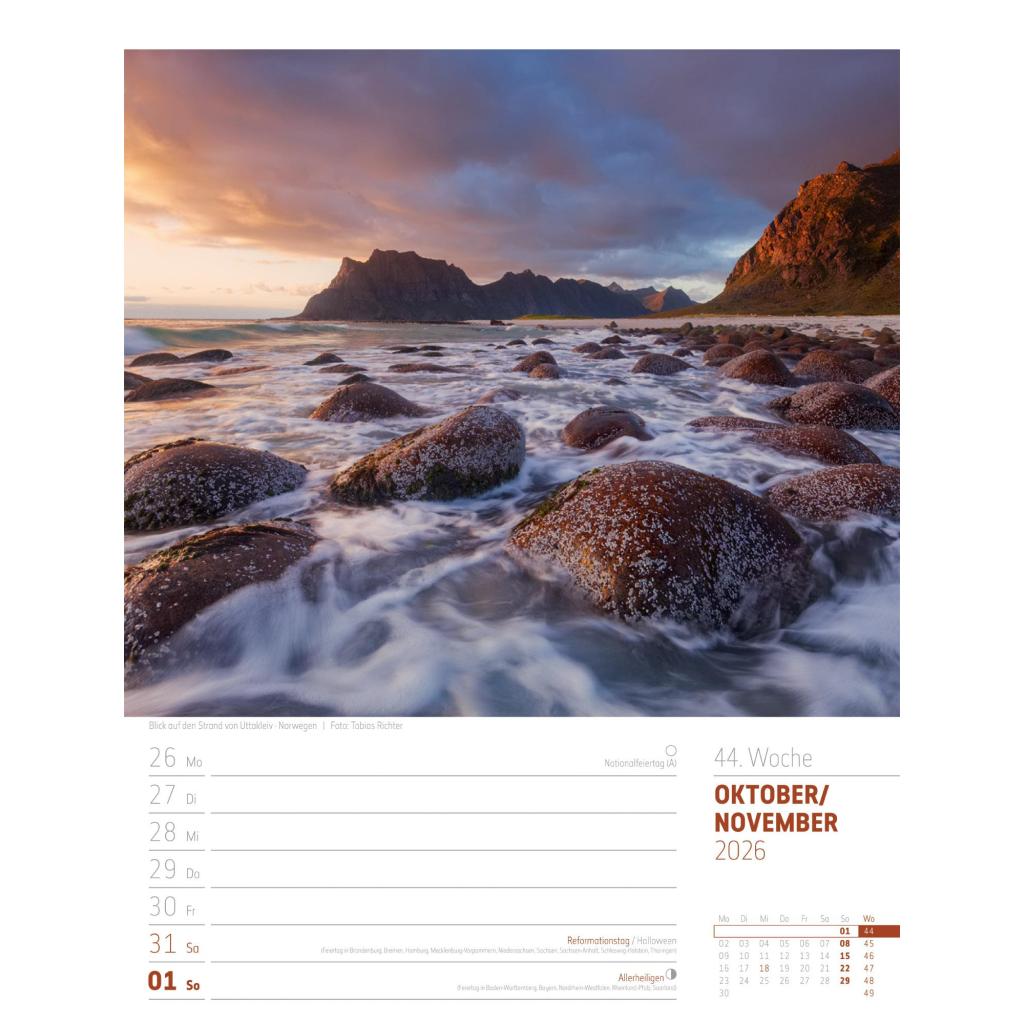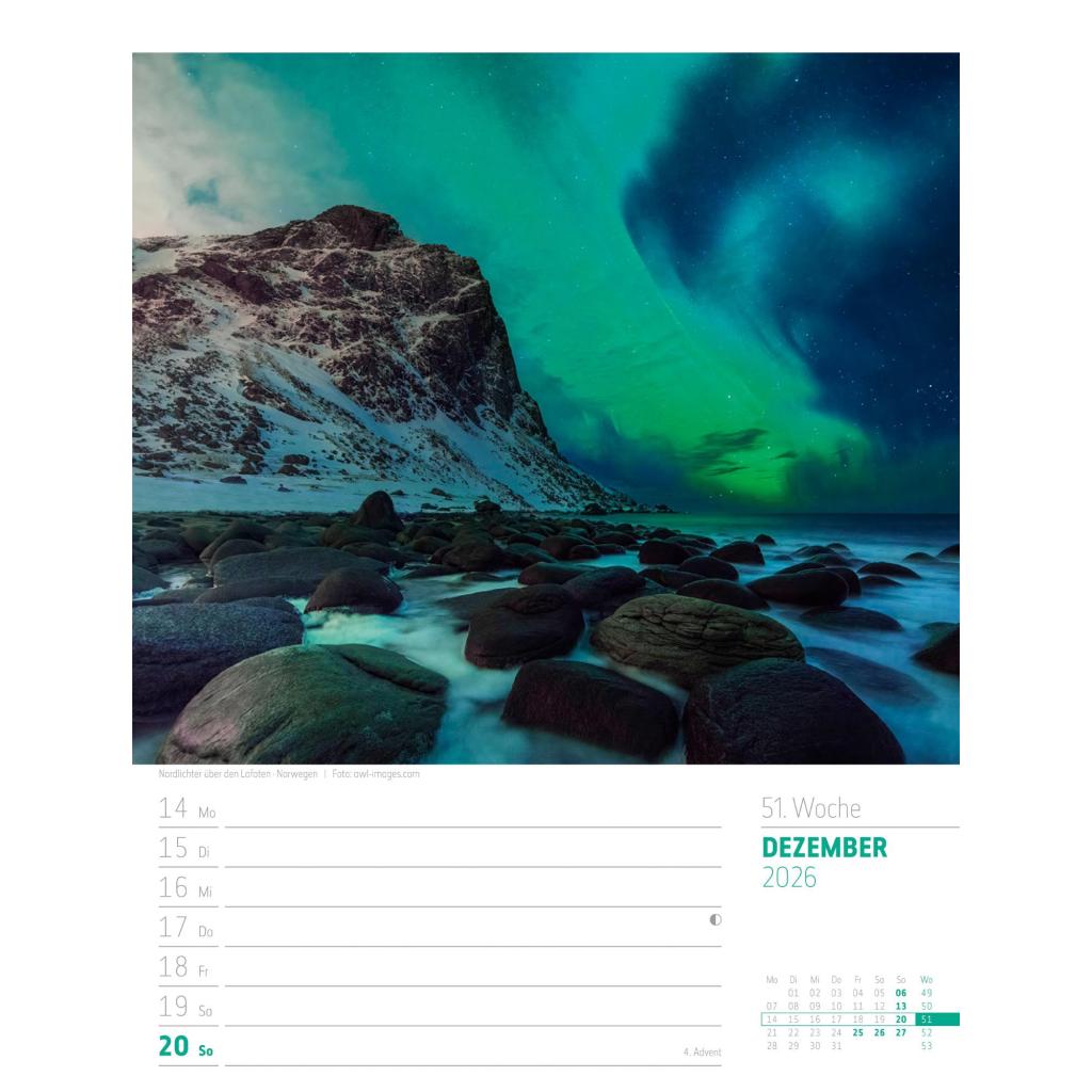Vielfältiger Reise-Wochenkalender im Hochformat (25x33 cm) | Norwegen & Co.