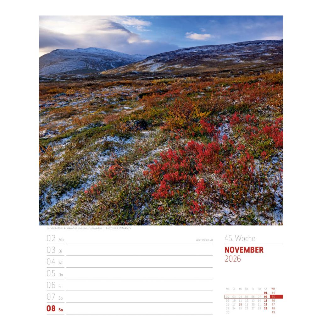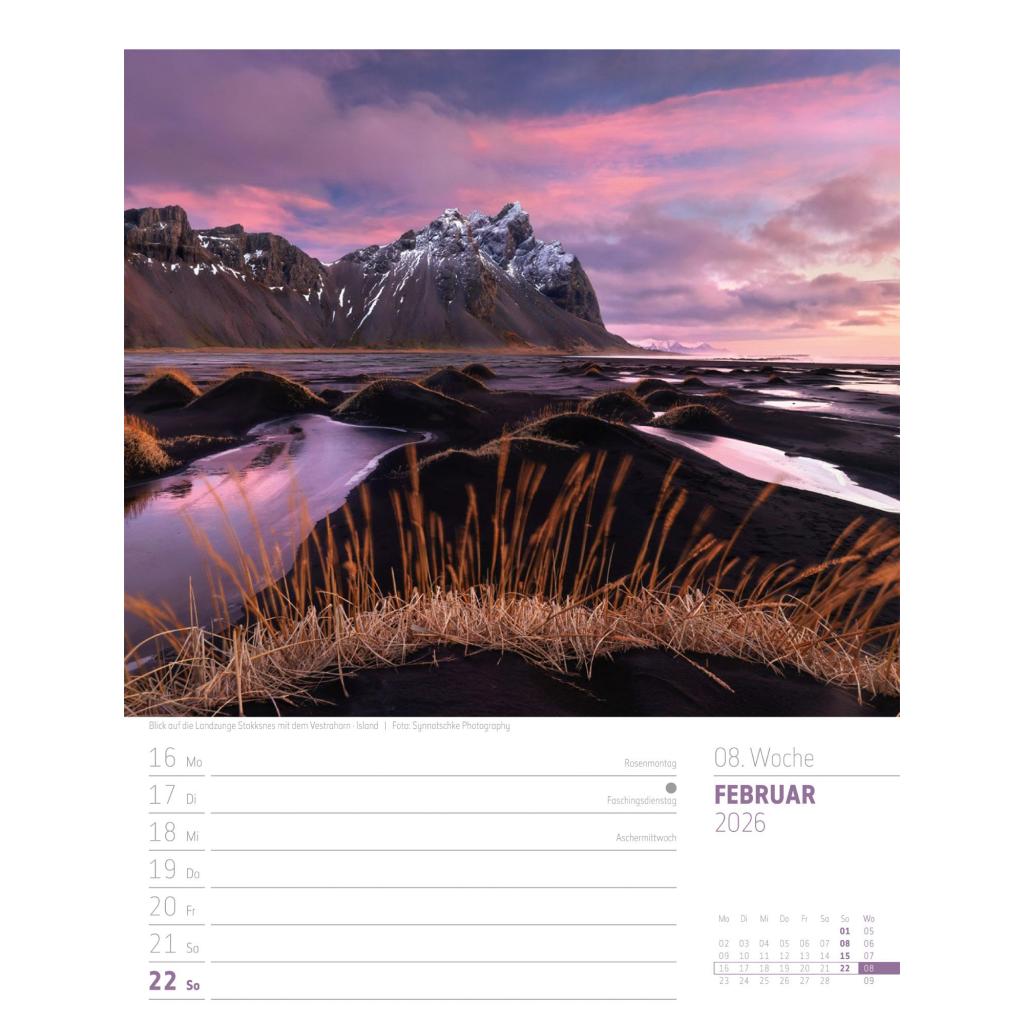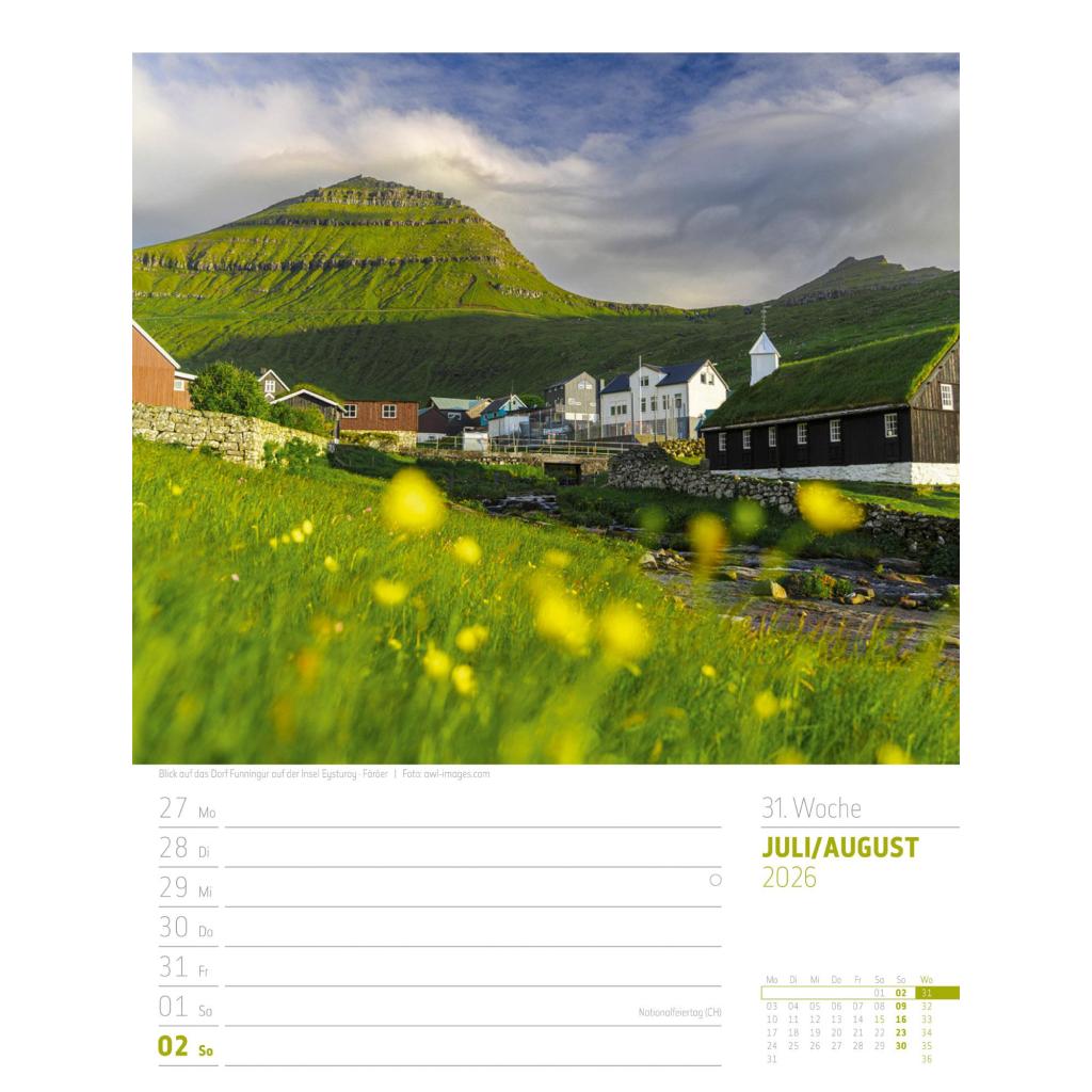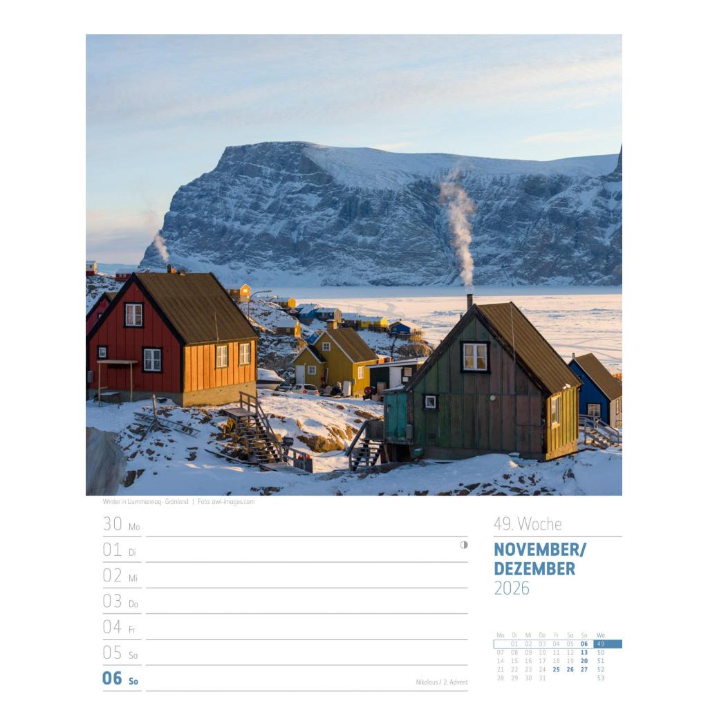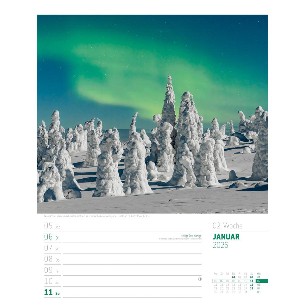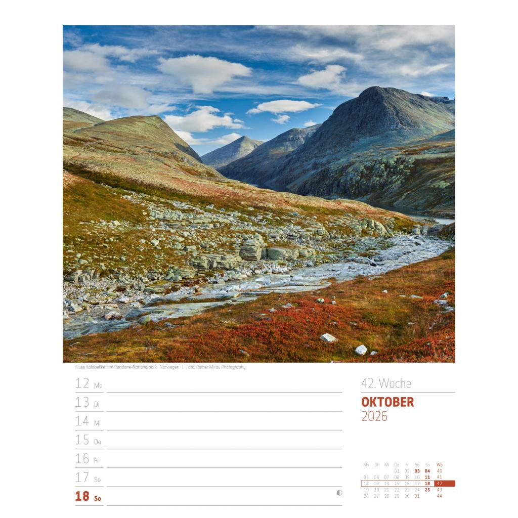 Vielfältiger Reise-Wochenkalender im Hochformat (25x33 cm) | Norwegen & Co.